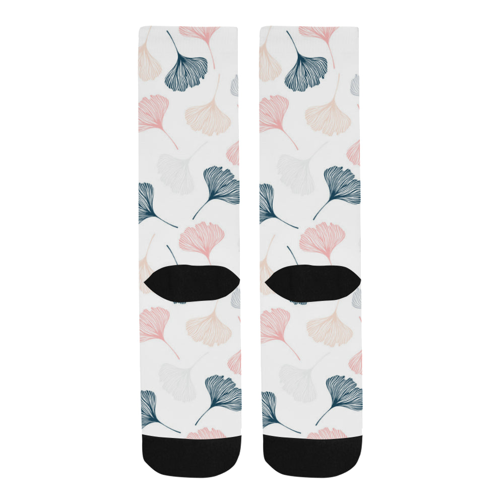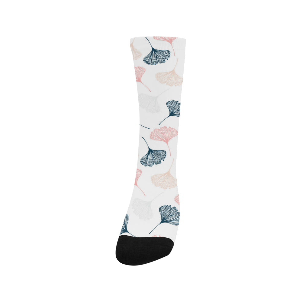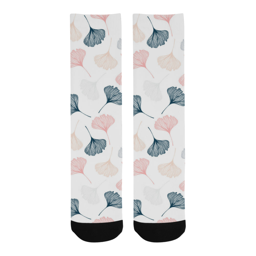 Black Gray Cream coral ginkgo leaves pattern Crew Socks