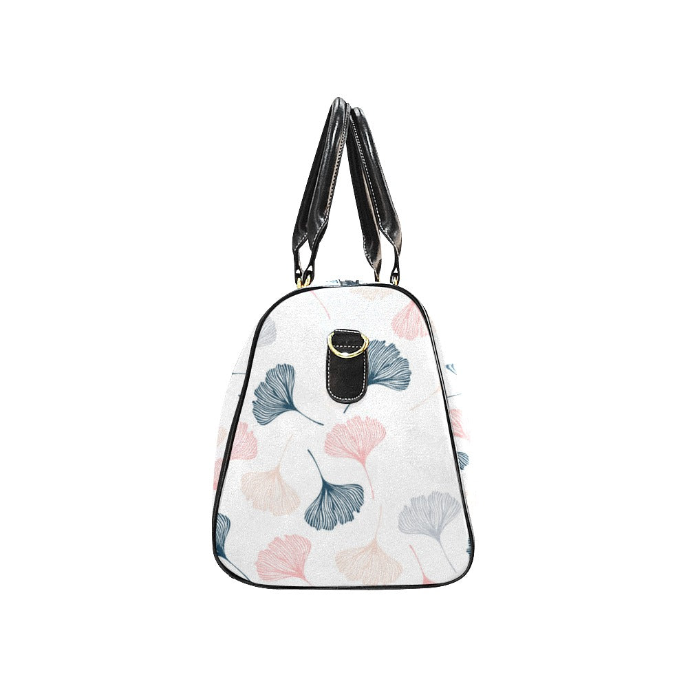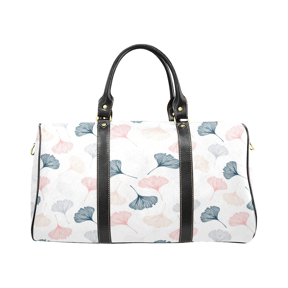 Black Gray Cream coral ginkgo leaves pattern Travel Bag