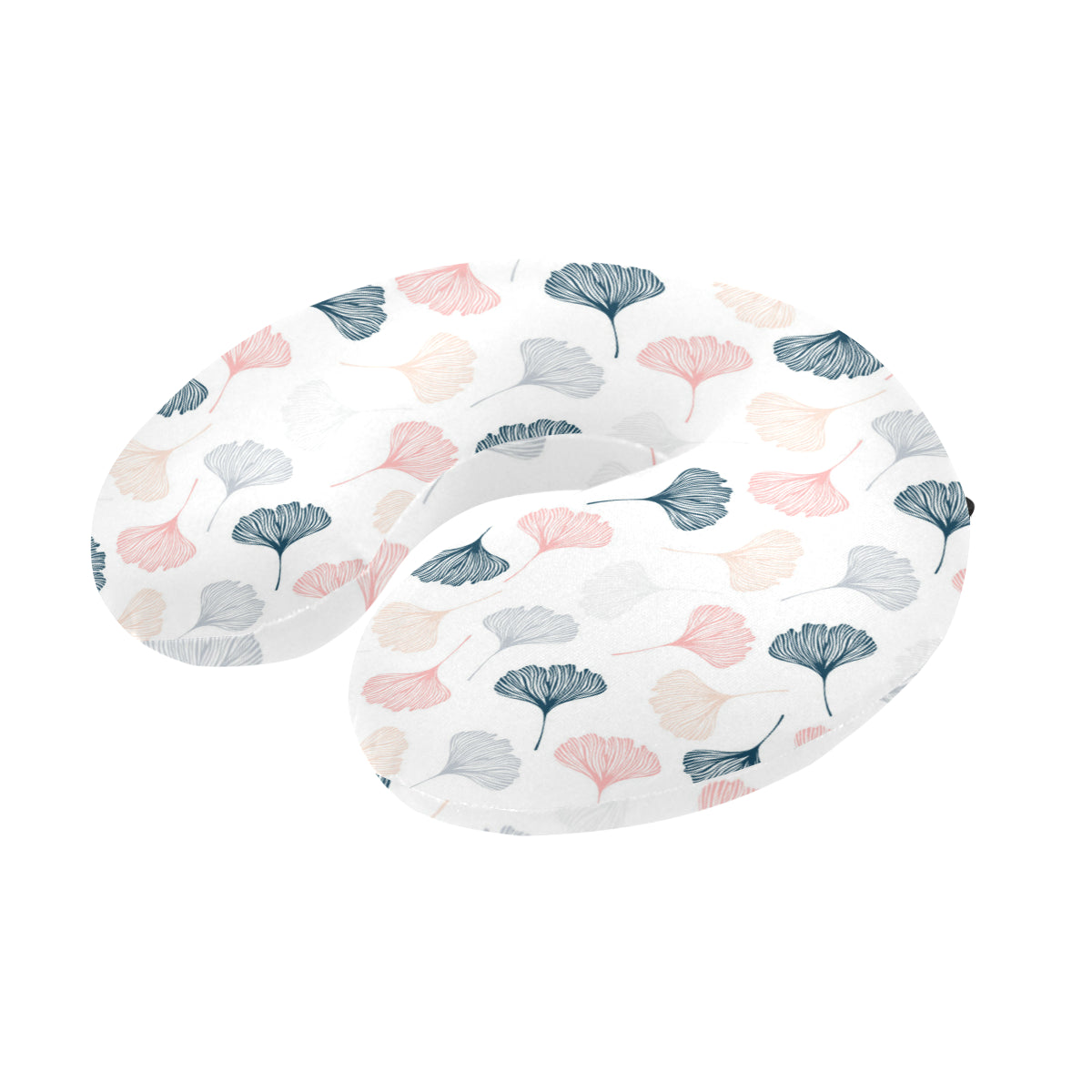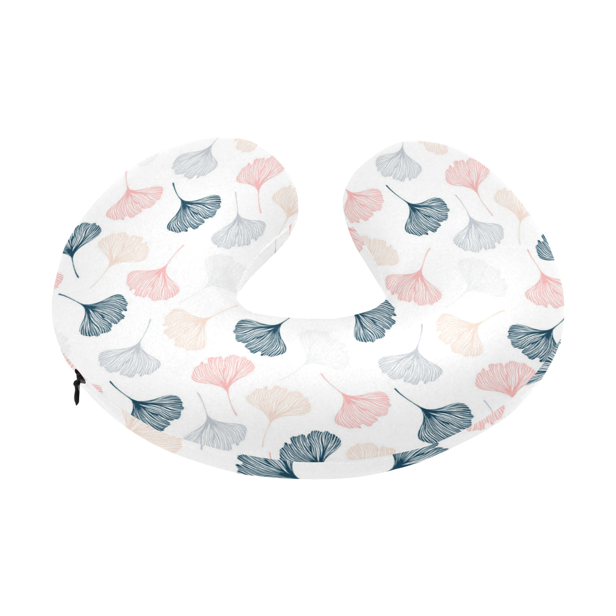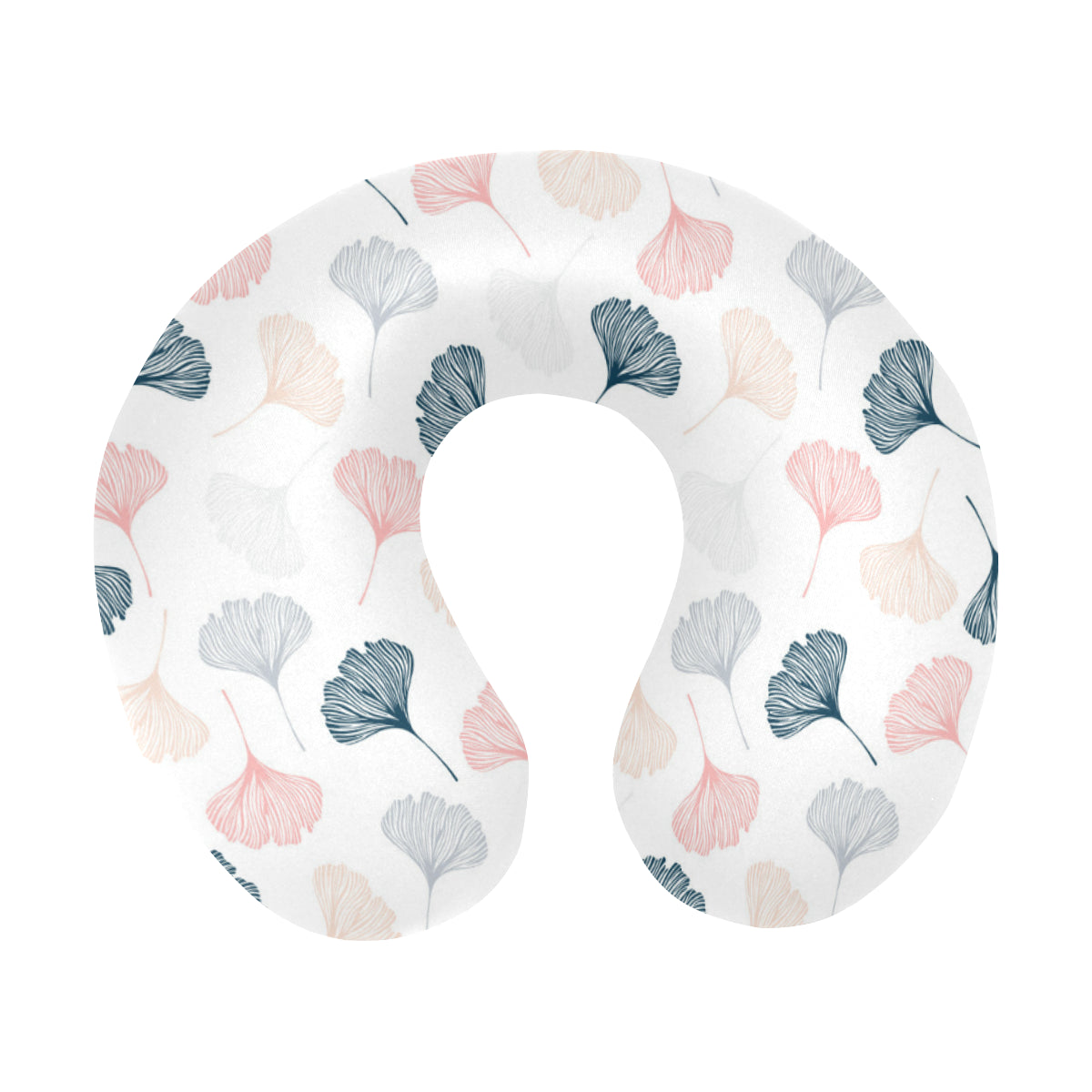 Black Gray Cream coral ginkgo leaves pattern U-Shaped Travel Neck Pillow
