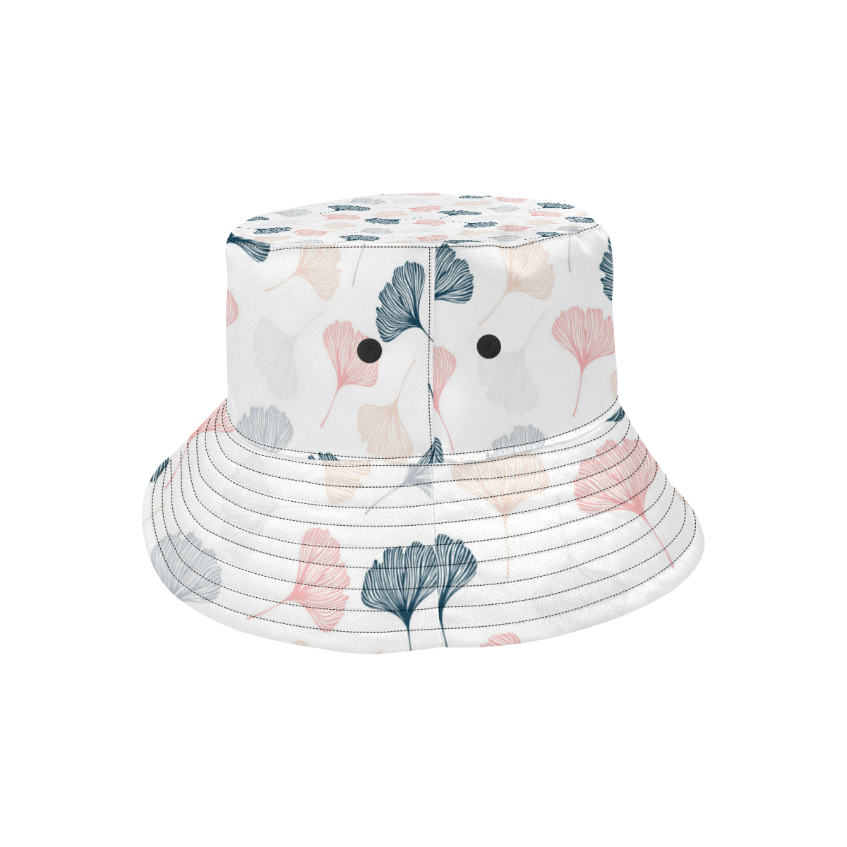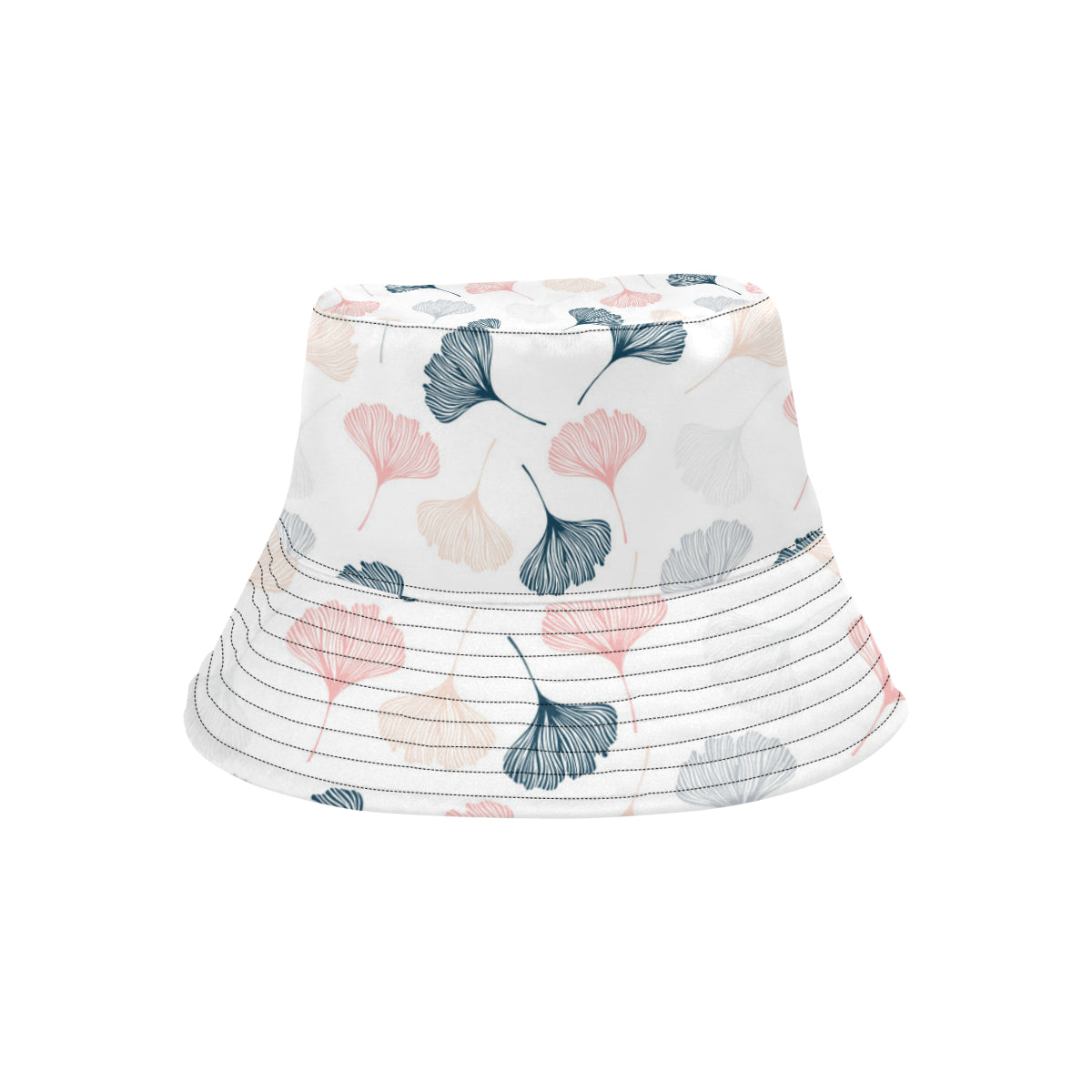 Black Gray Cream coral ginkgo leaves pattern Unisex Bucket Hat