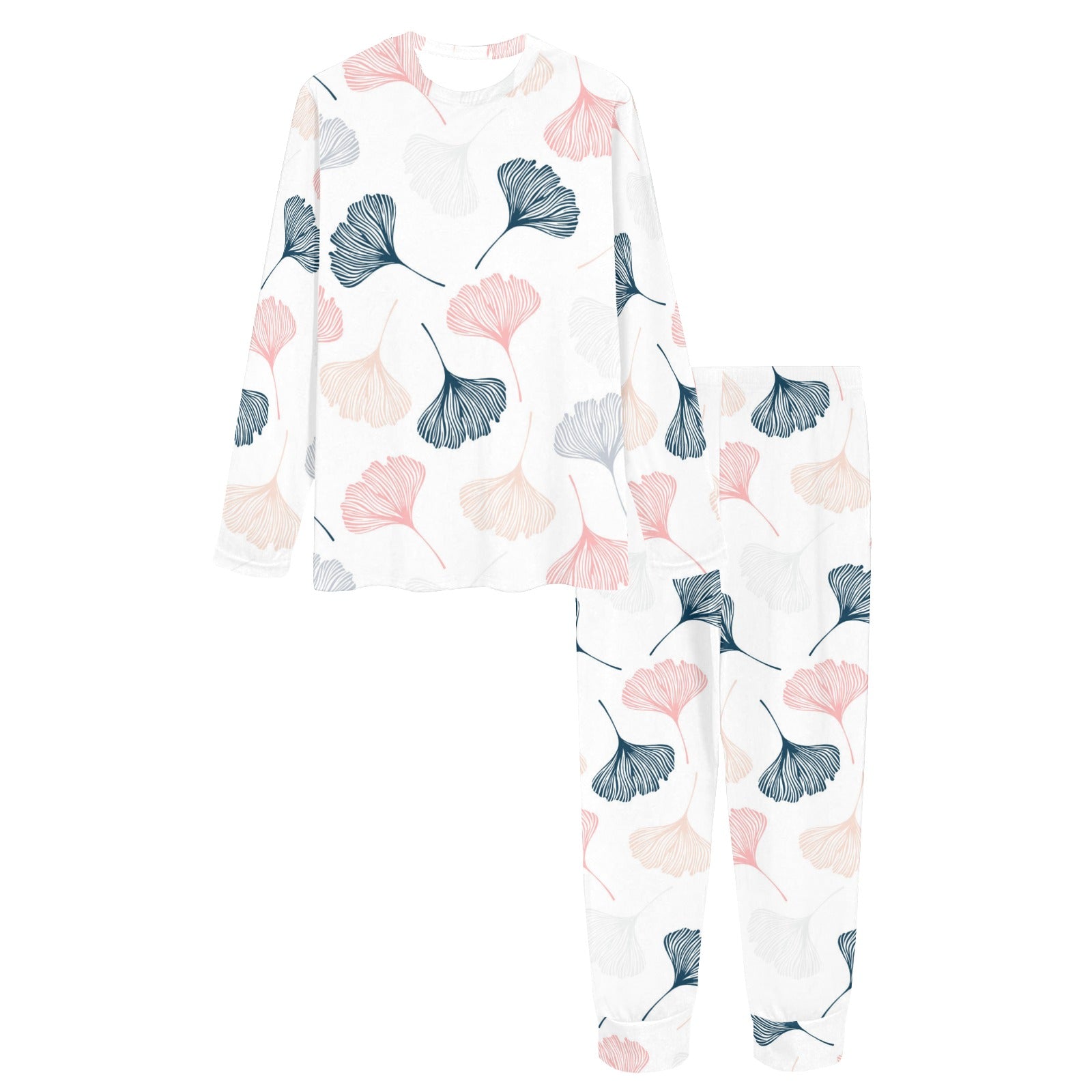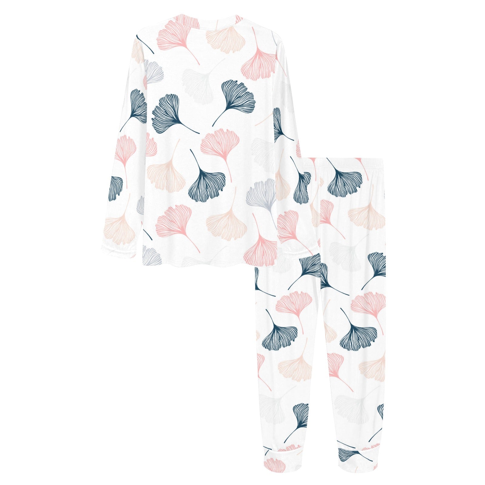 Black Gray Cream coral ginkgo leaves pattern Women's All Over Print Pajama Set