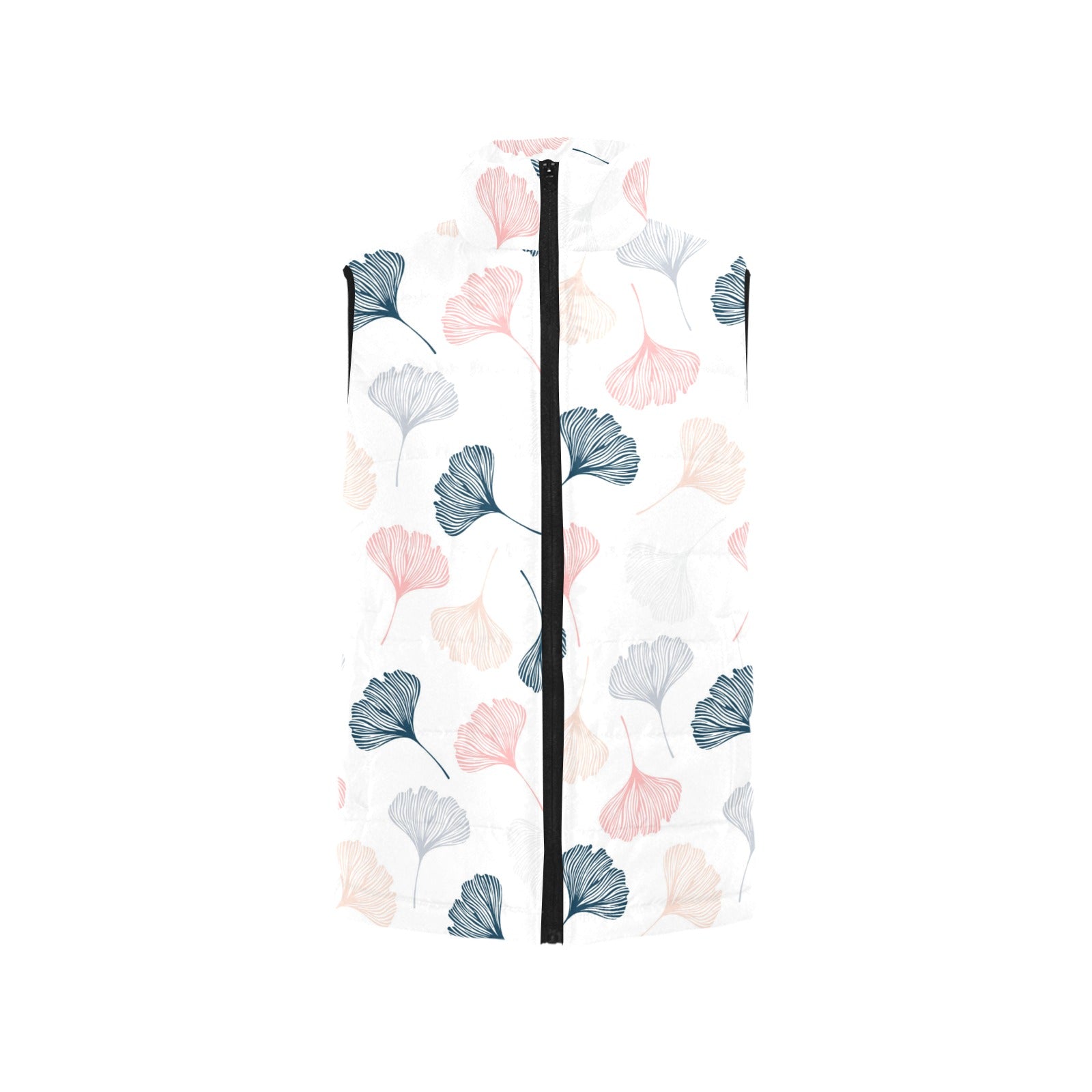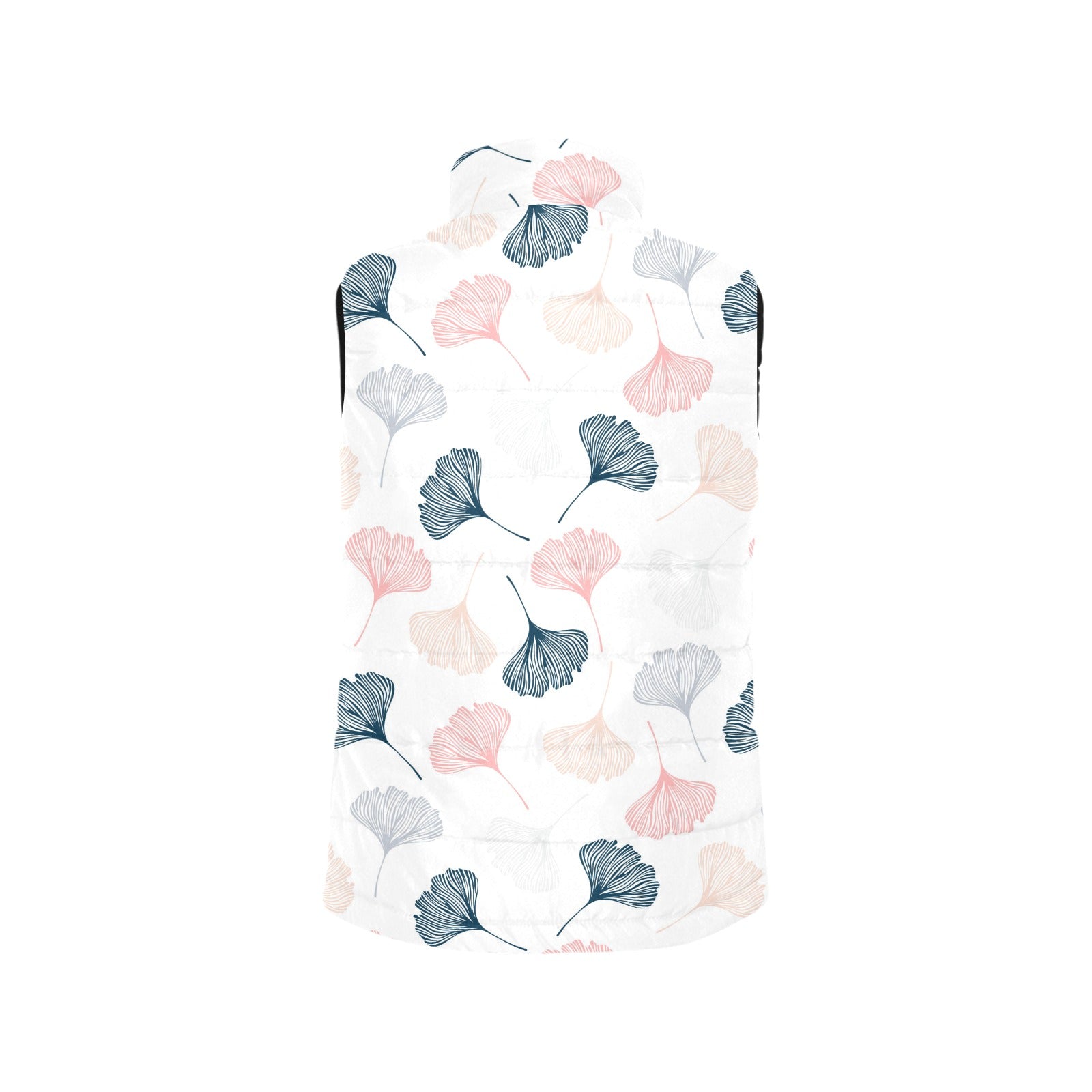 Black Gray Cream coral ginkgo leaves pattern Women's Padded Vest
