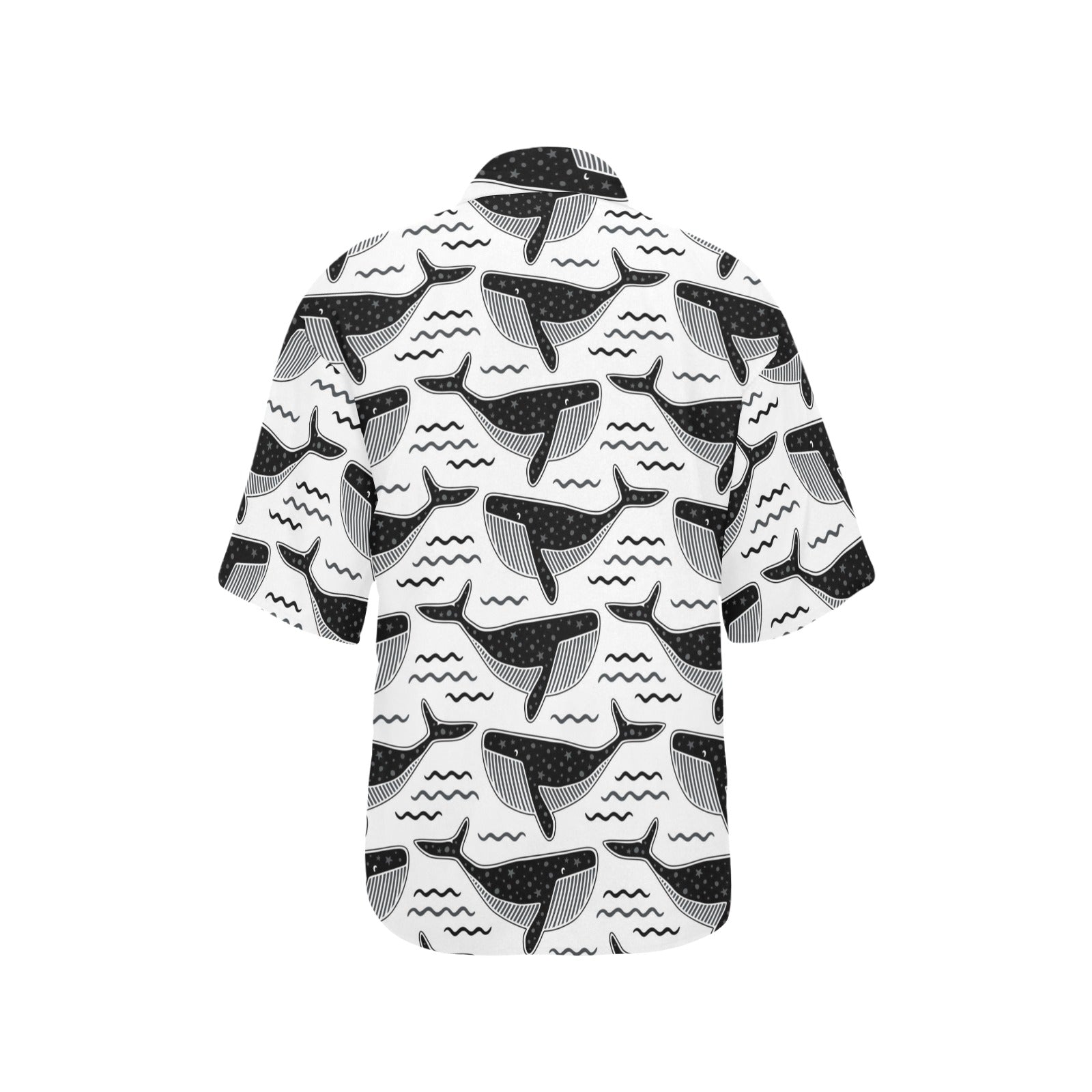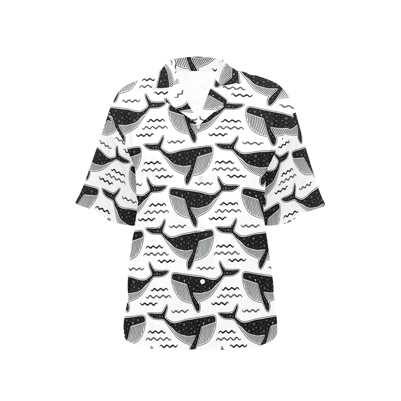 Black whale pattern Women's All Over Print Hawaiian Shirt