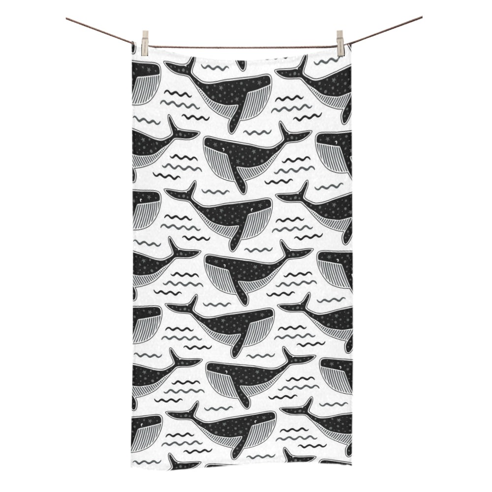 Black whale pattern Bath Towel 30"x56" is a uniqued design and limited item. It made to order, hand printed, and sewn with love in our factory.