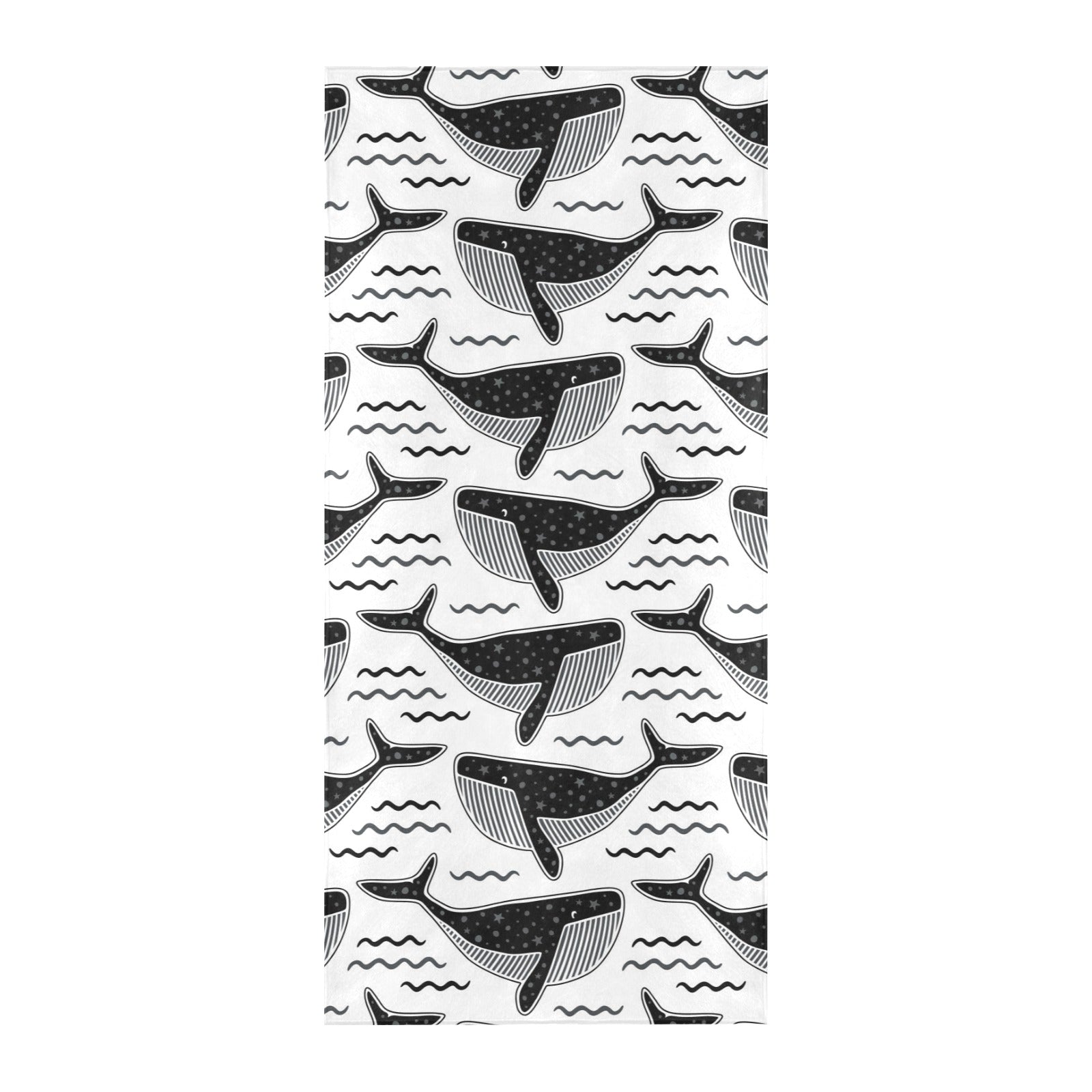 Black whale pattern Beach Towel