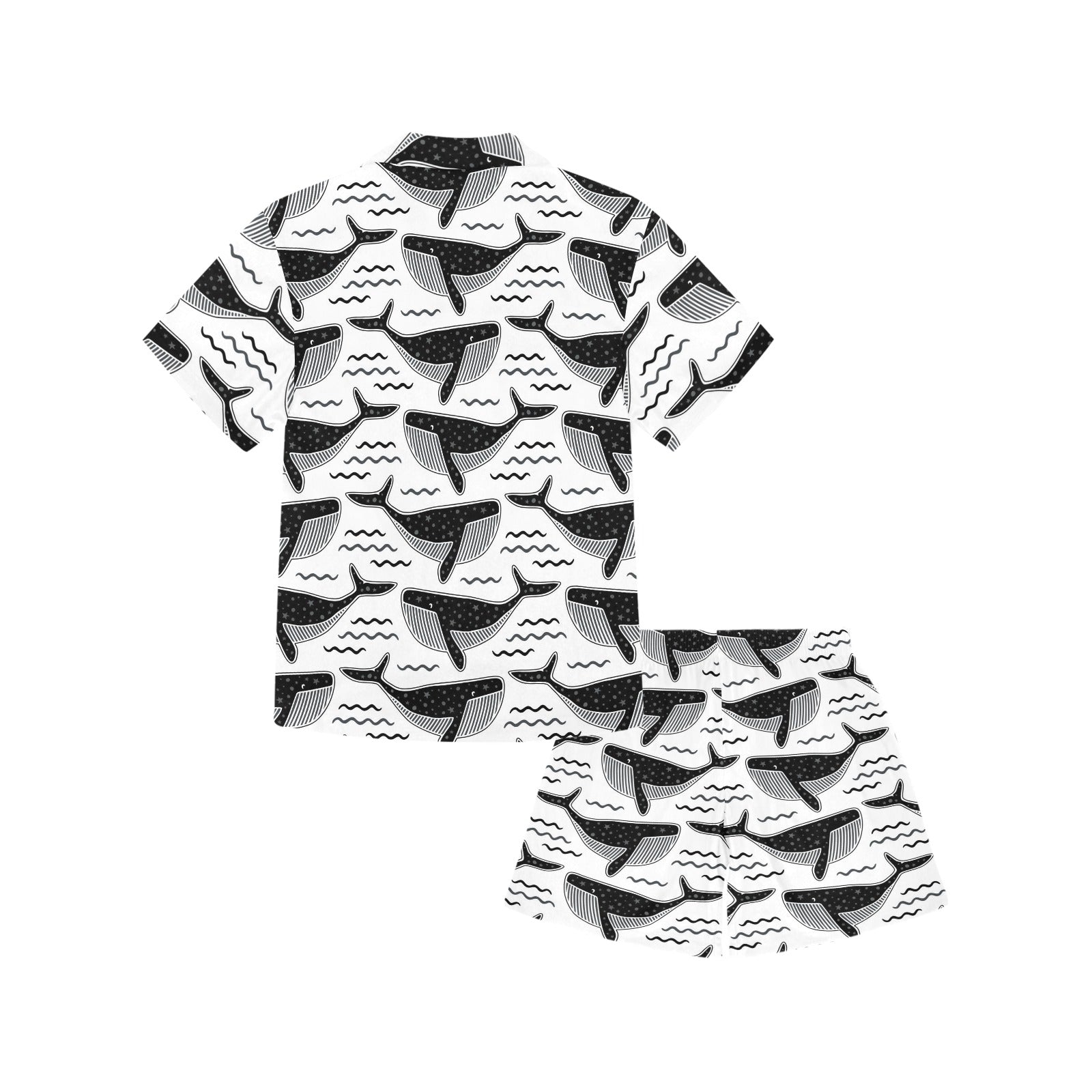 Black whale pattern Kids' Boys' Girls' V-Neck Short Pajama Set