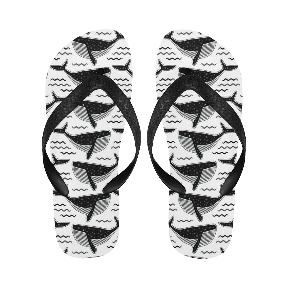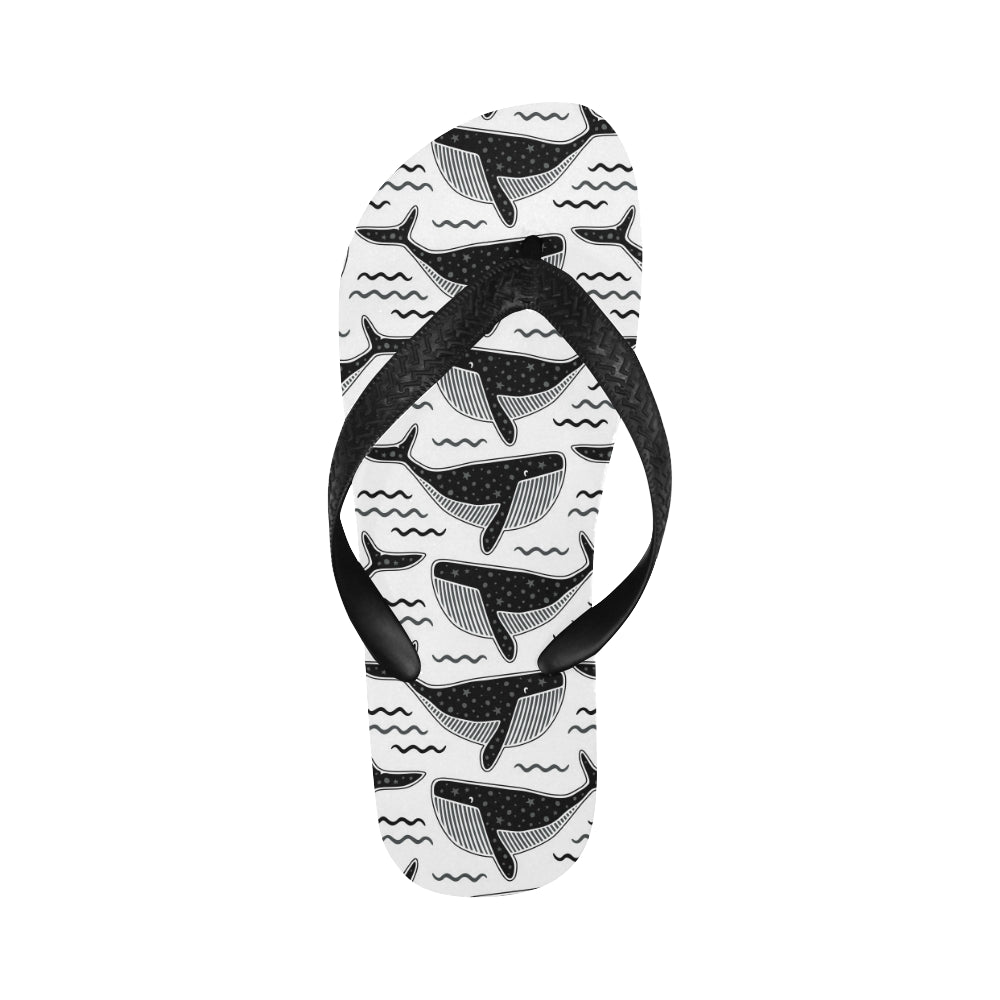 Black whale pattern Unisex Flip Flops
