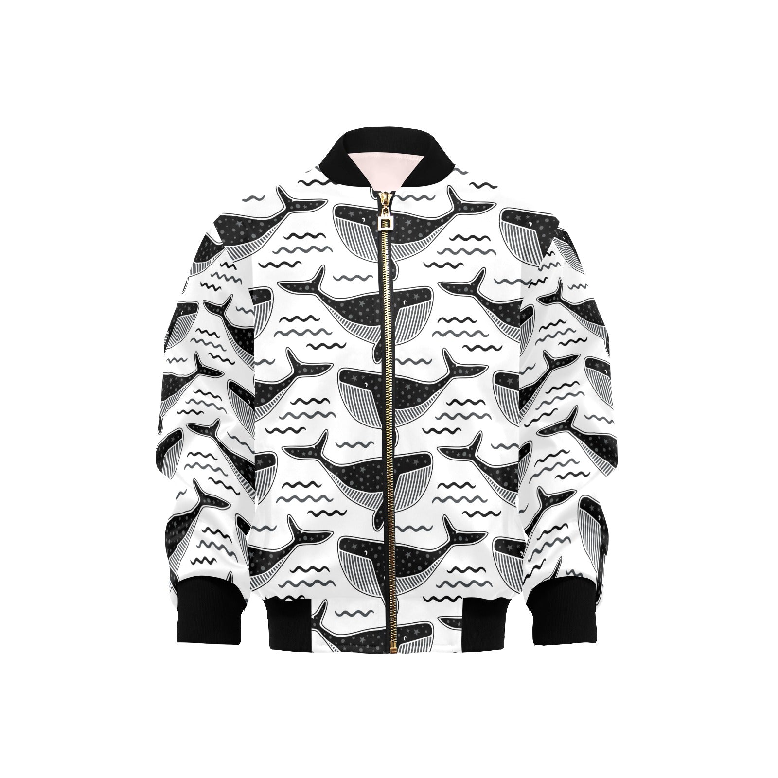 Black whale pattern Kids' Boys' Girls' Bomber Jacket