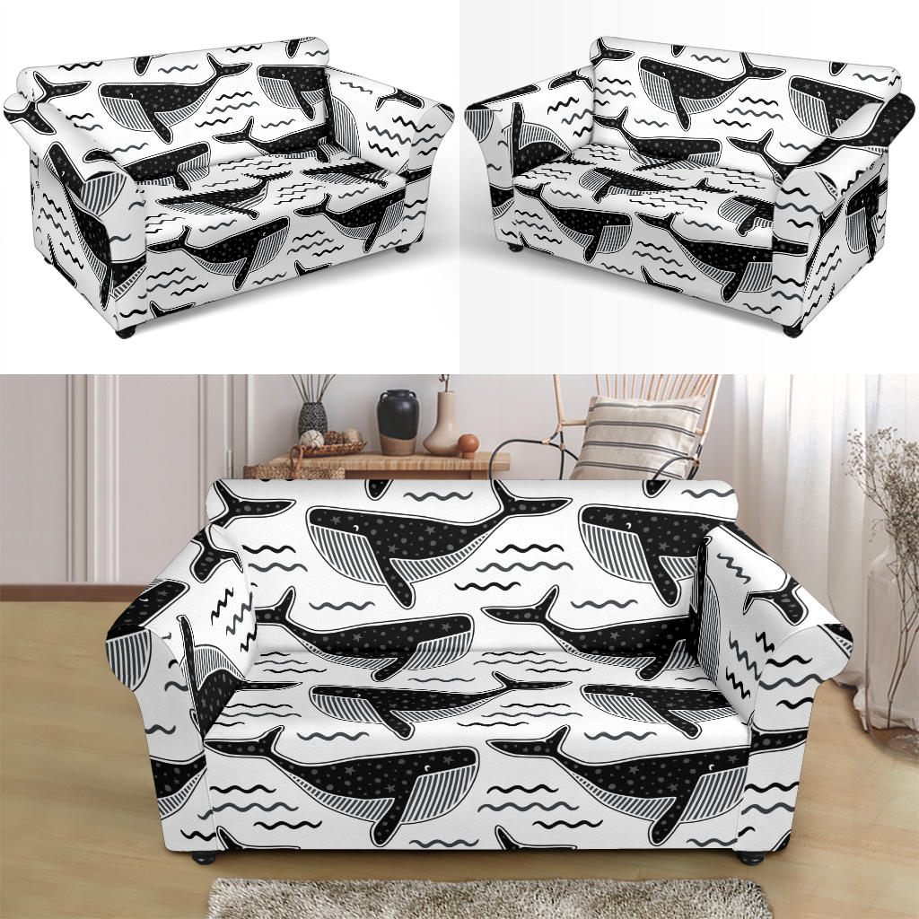Black whale pattern Loveseat Sofa Slipcover is a uniqued design and limited item. It made to order, hand printed, and sewn with love in our factory.