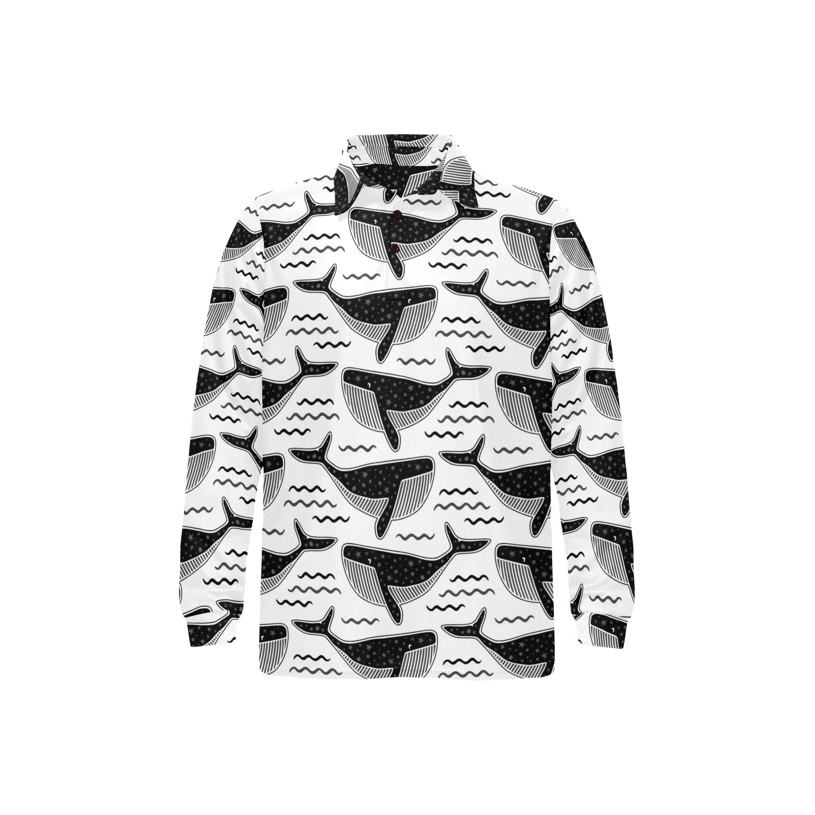 Black whale pattern Men's Long Sleeve Polo Shirt