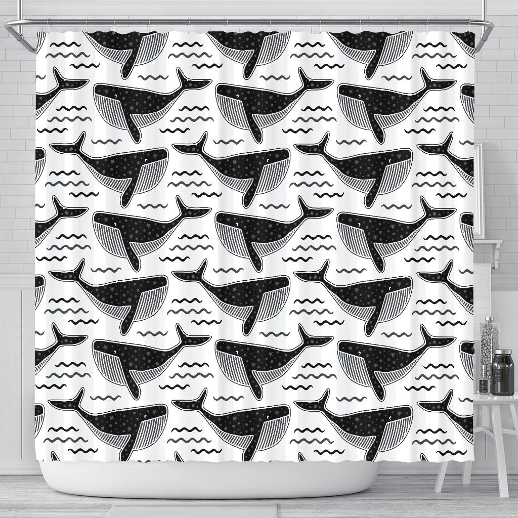 Black whale pattern Shower Curtain is a uniqued design and limited item. It made to order, hand printed, and sewn with love in our factory.