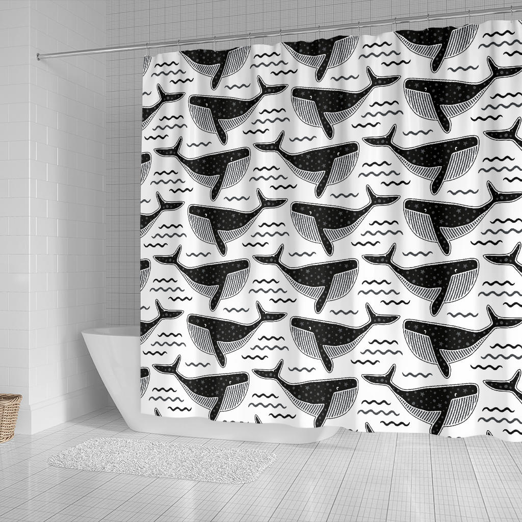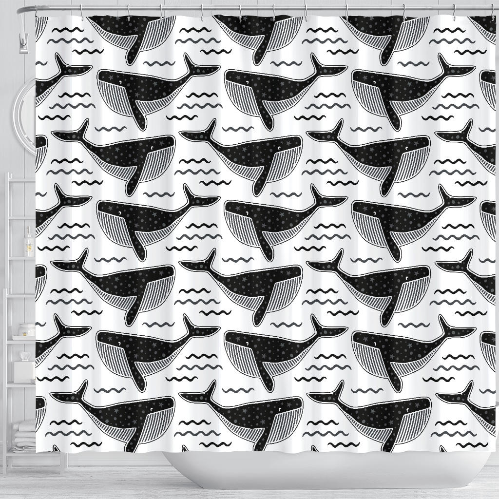 Black Whale Pattern Shower Curtain Fulfilled In US