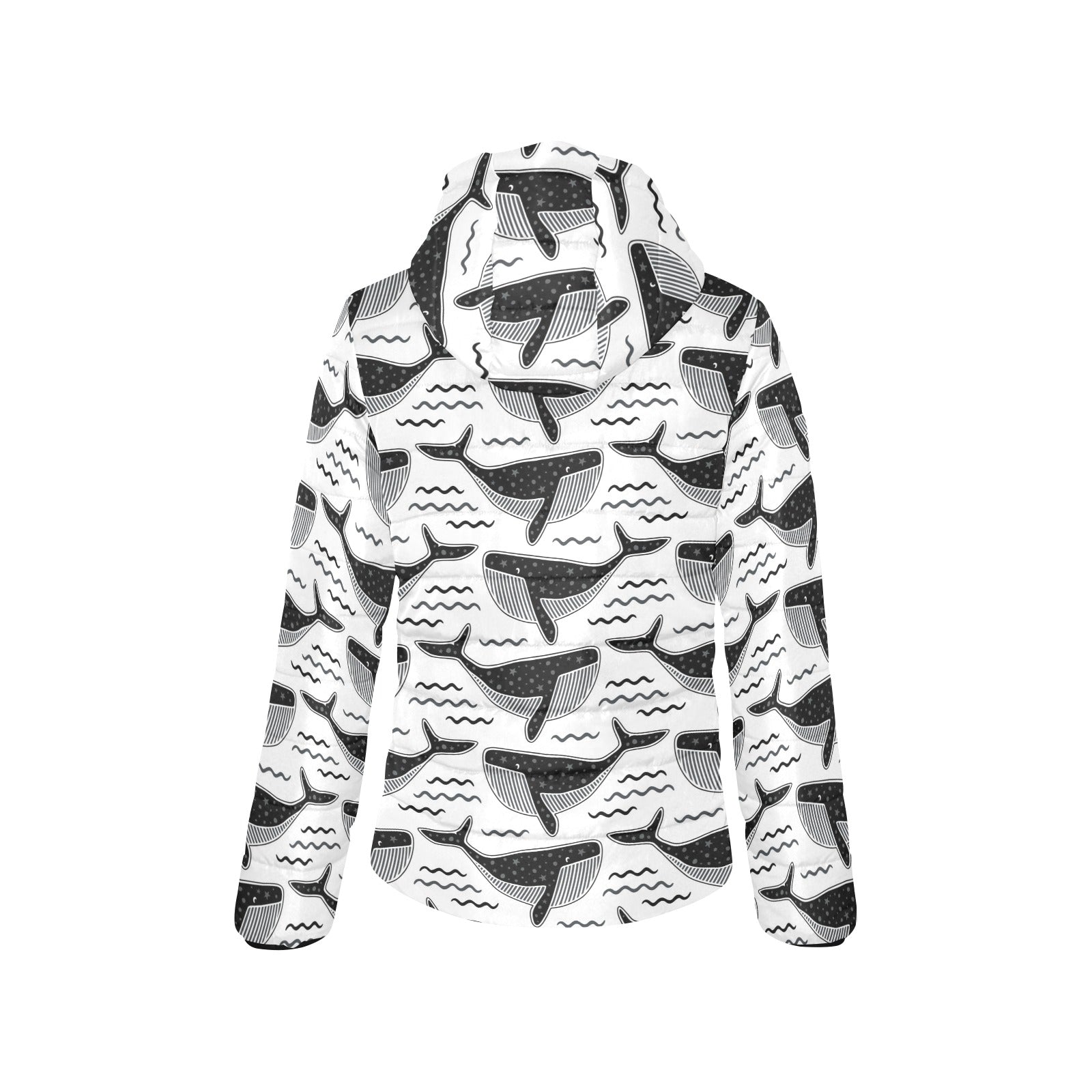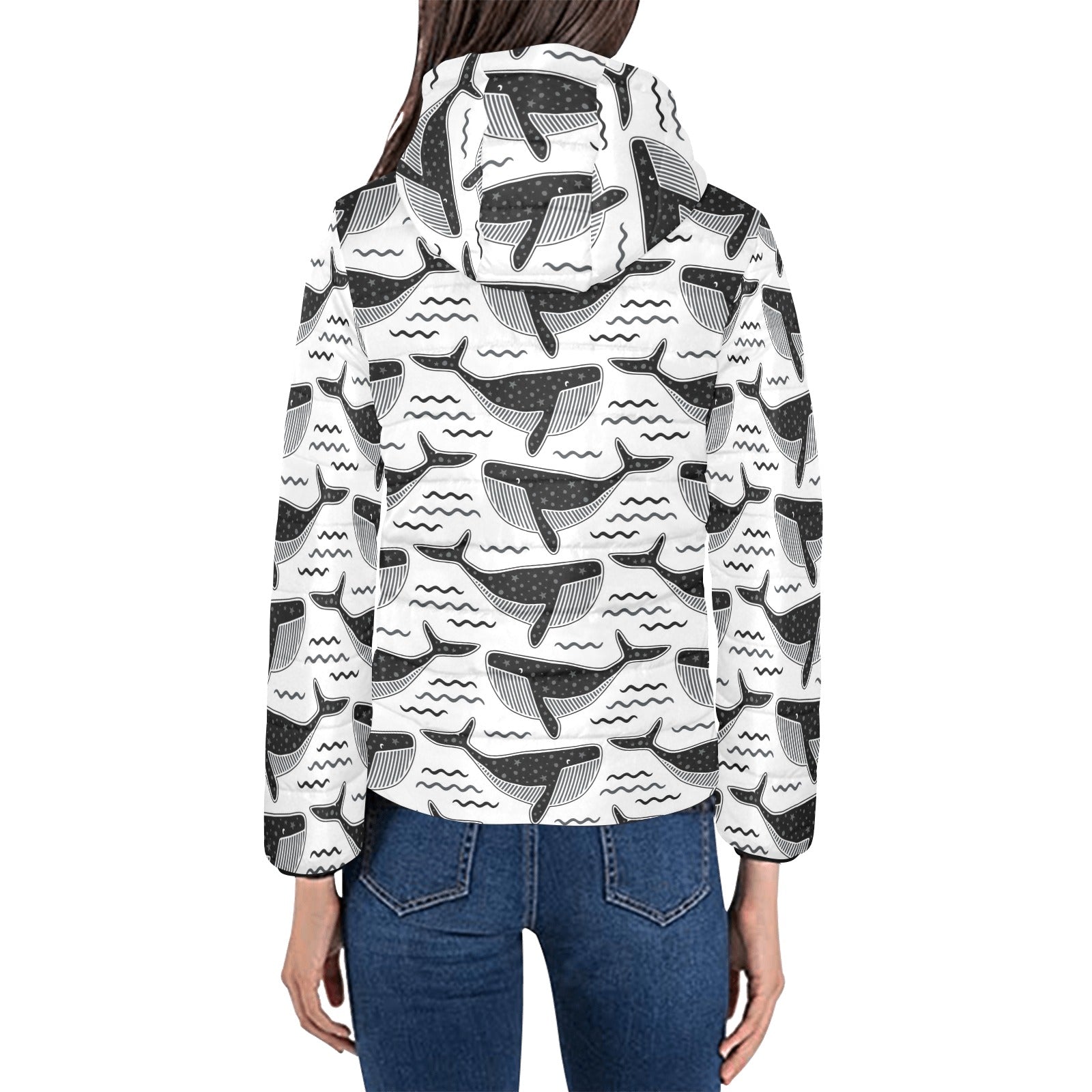 Black whale pattern Women's Padded Hooded Jacket