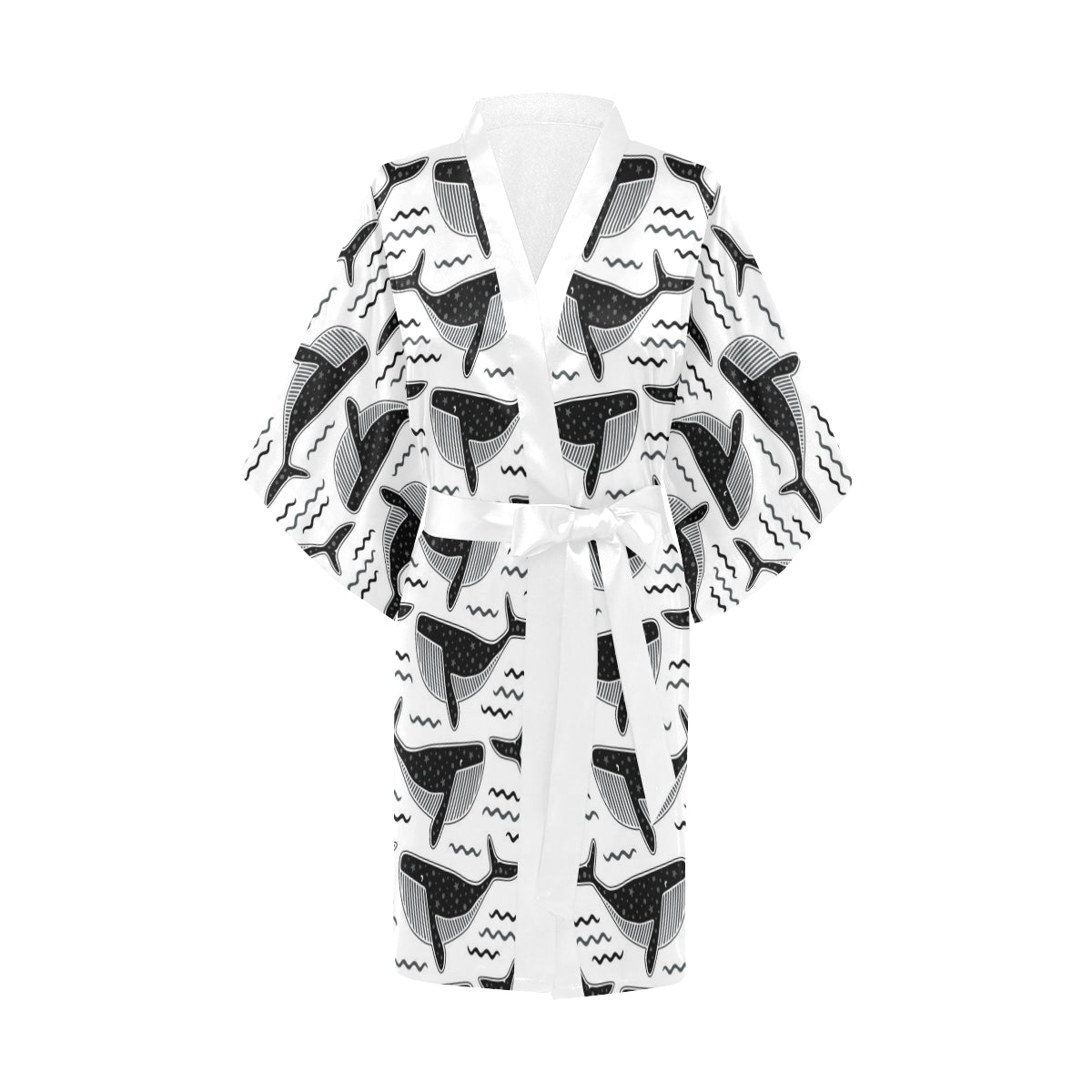 Black whale pattern Women's Short Kimono Robe is a uniqued design and limited item. It made to order, hand printed, and sewn with love in our factory.