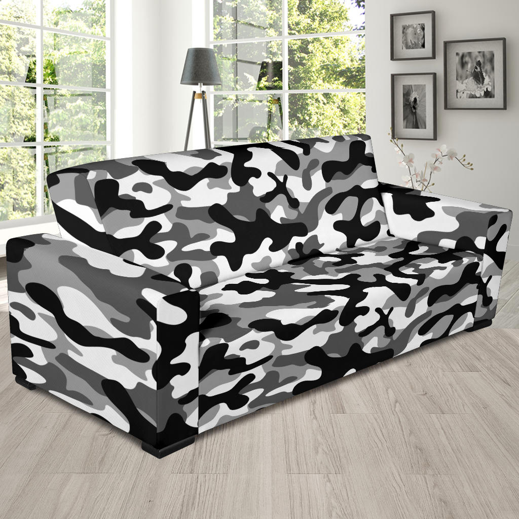 Black White Camo Camouflage Pattern Sofa Slipcover
