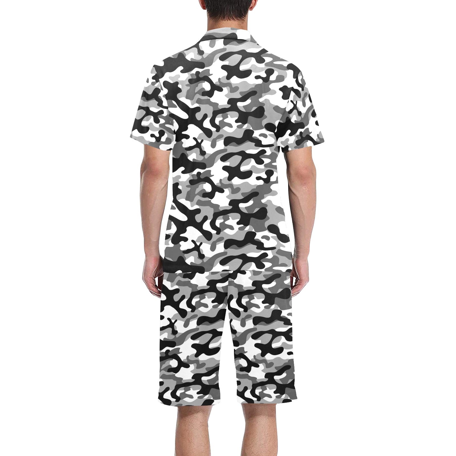 Black white camouflage pattern Men's V-Neck Short Pajama Set