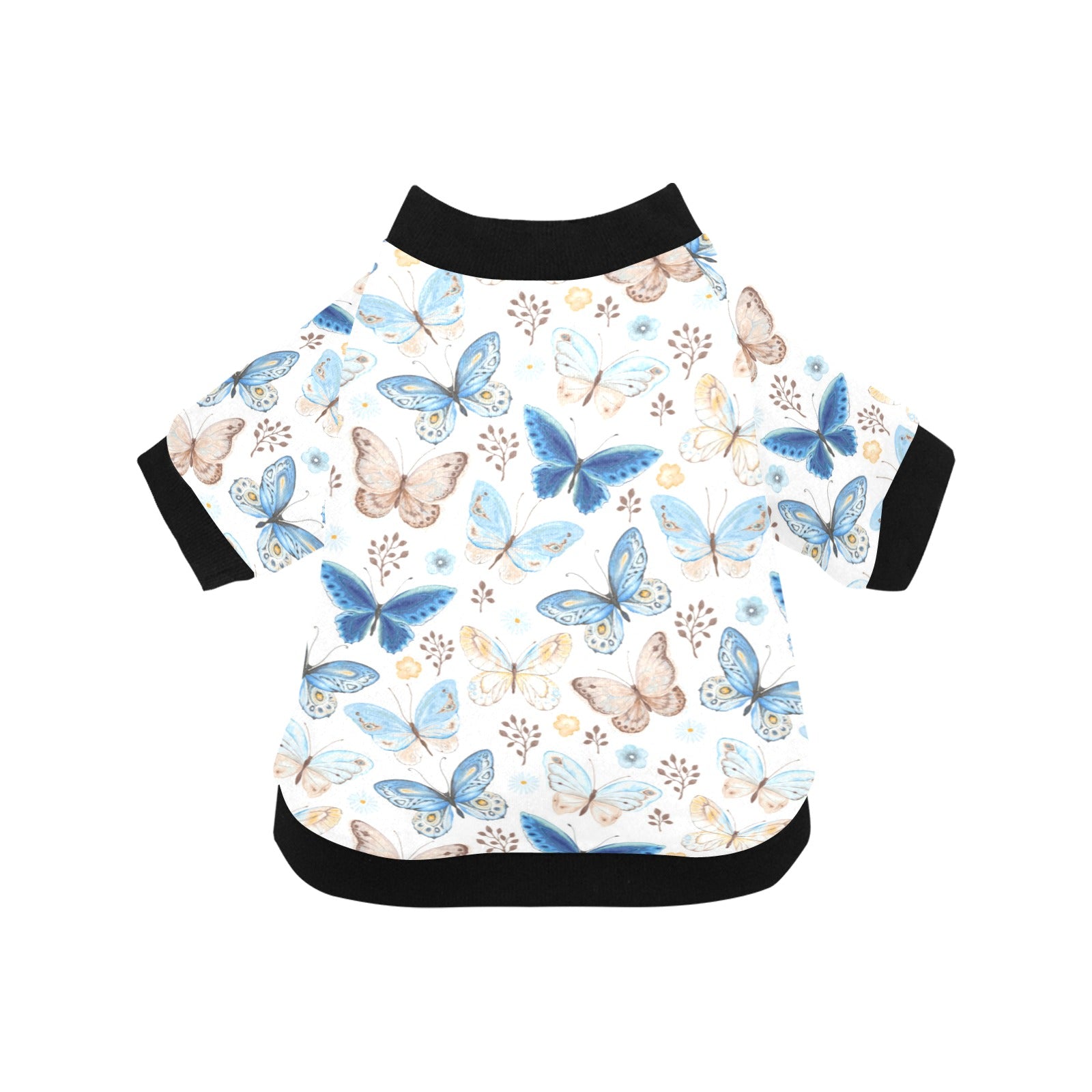 blue butterfly pattern All Over Print Pet Dog Round Neck Fuzzy Shirt