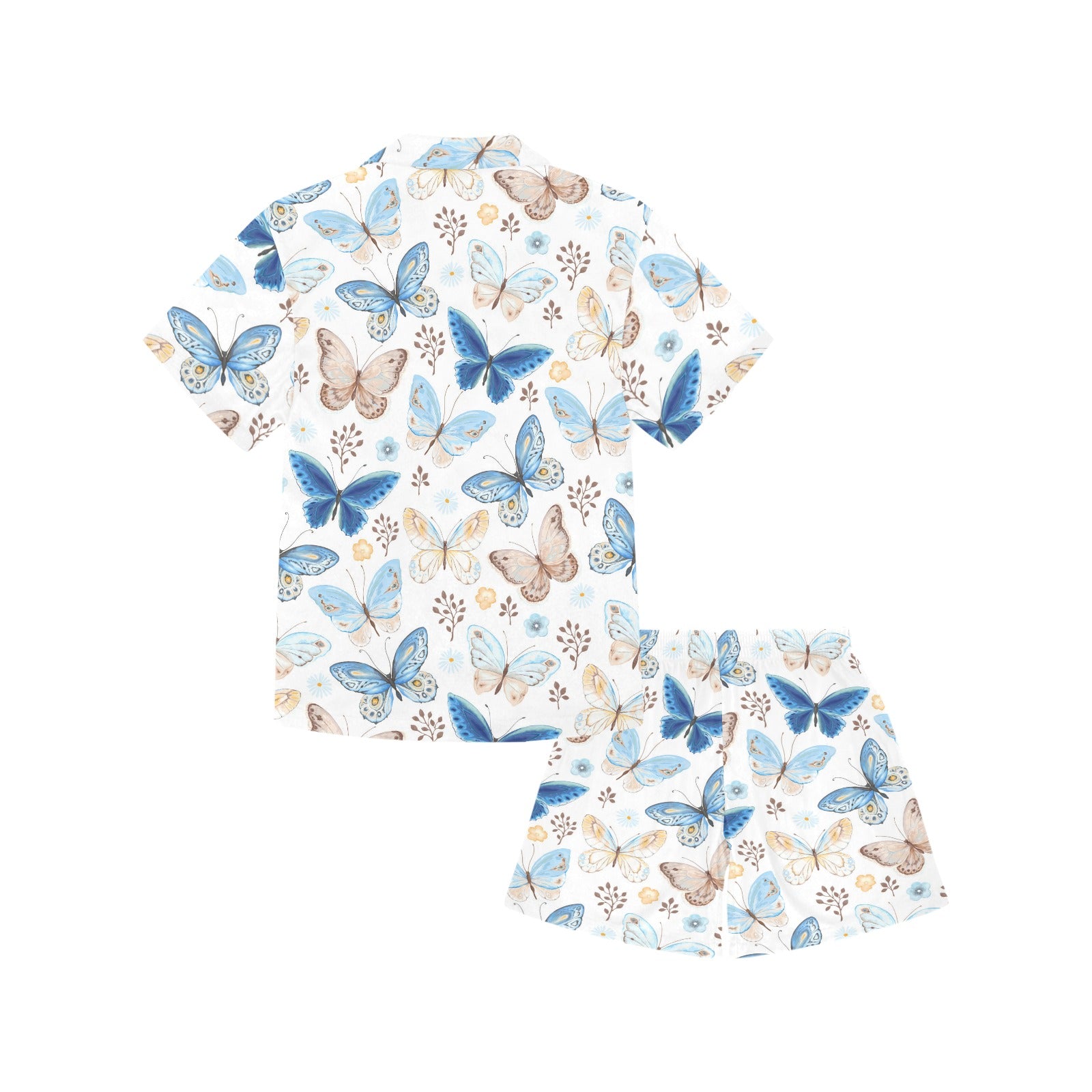 blue butterfly pattern Kids' Boys' Girls' V-Neck Short Pajama Set