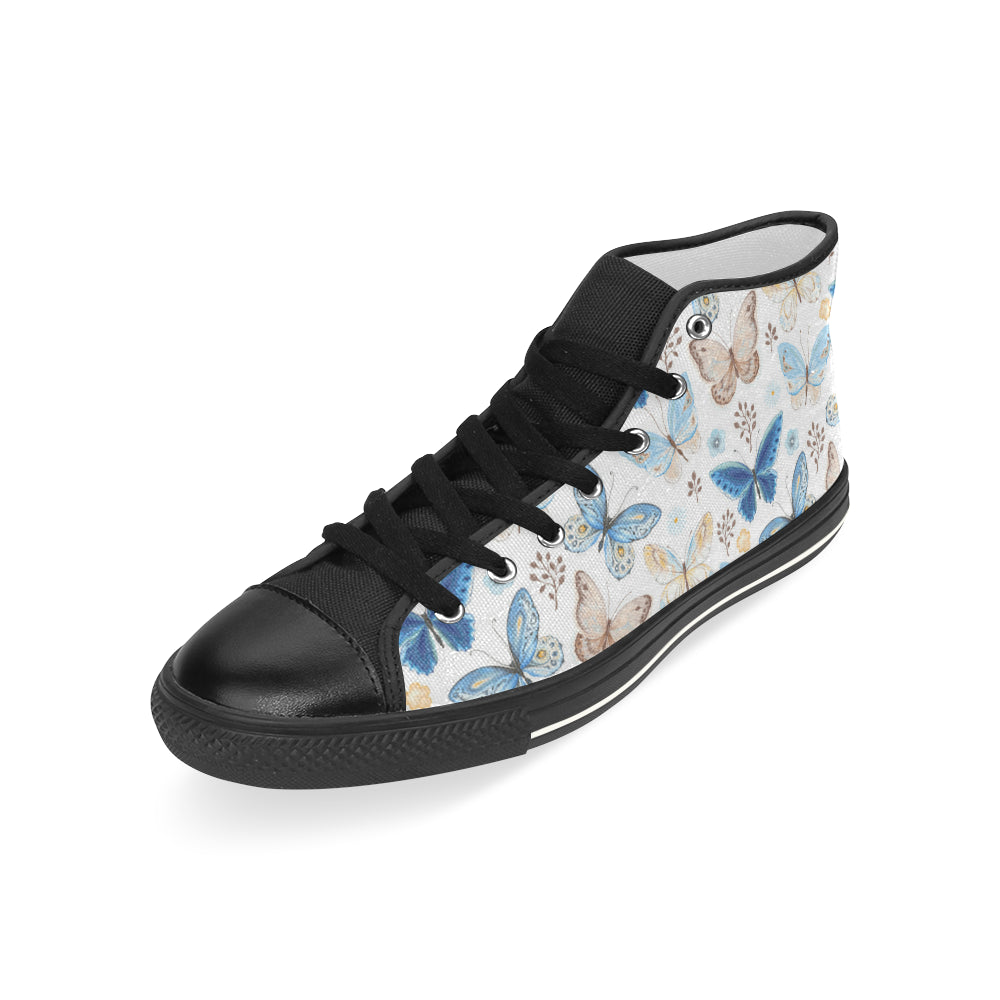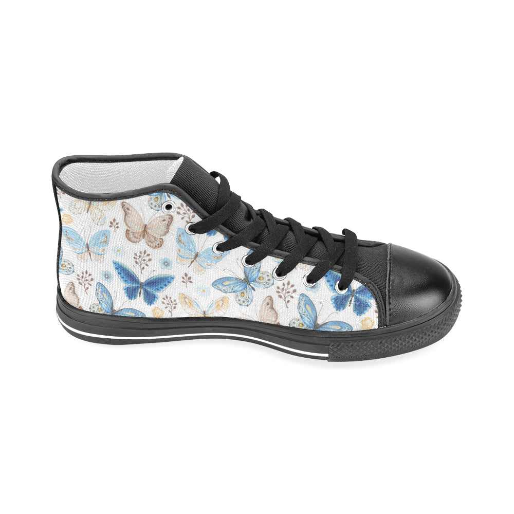 blue butterfly pattern Men's High Top Canvas Shoes Black