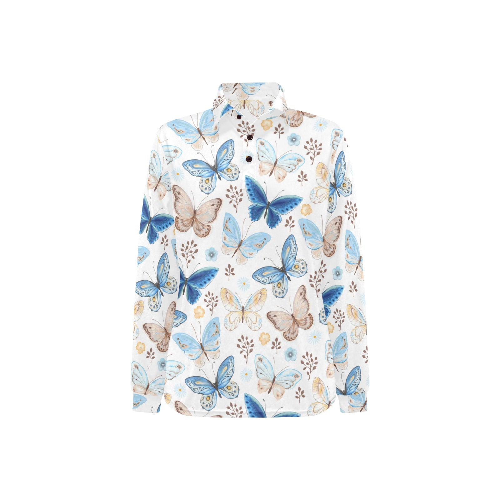 blue butterfly pattern Women's Long Sleeve Polo Shirt