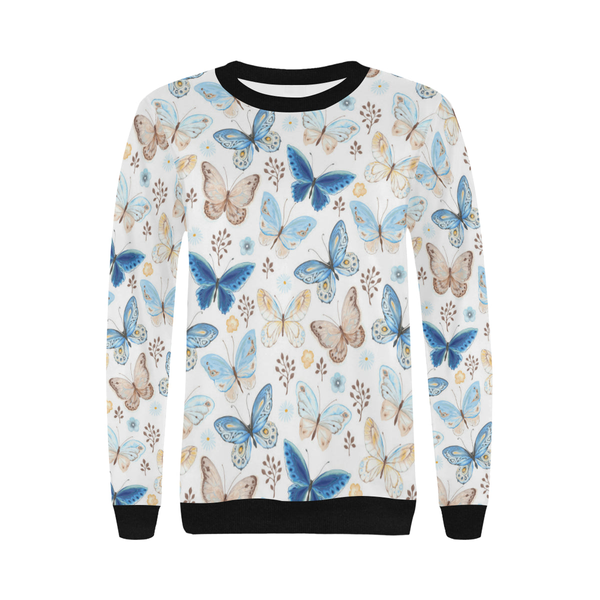 blue butterfly pattern Women's Crew Neck Sweatshirt