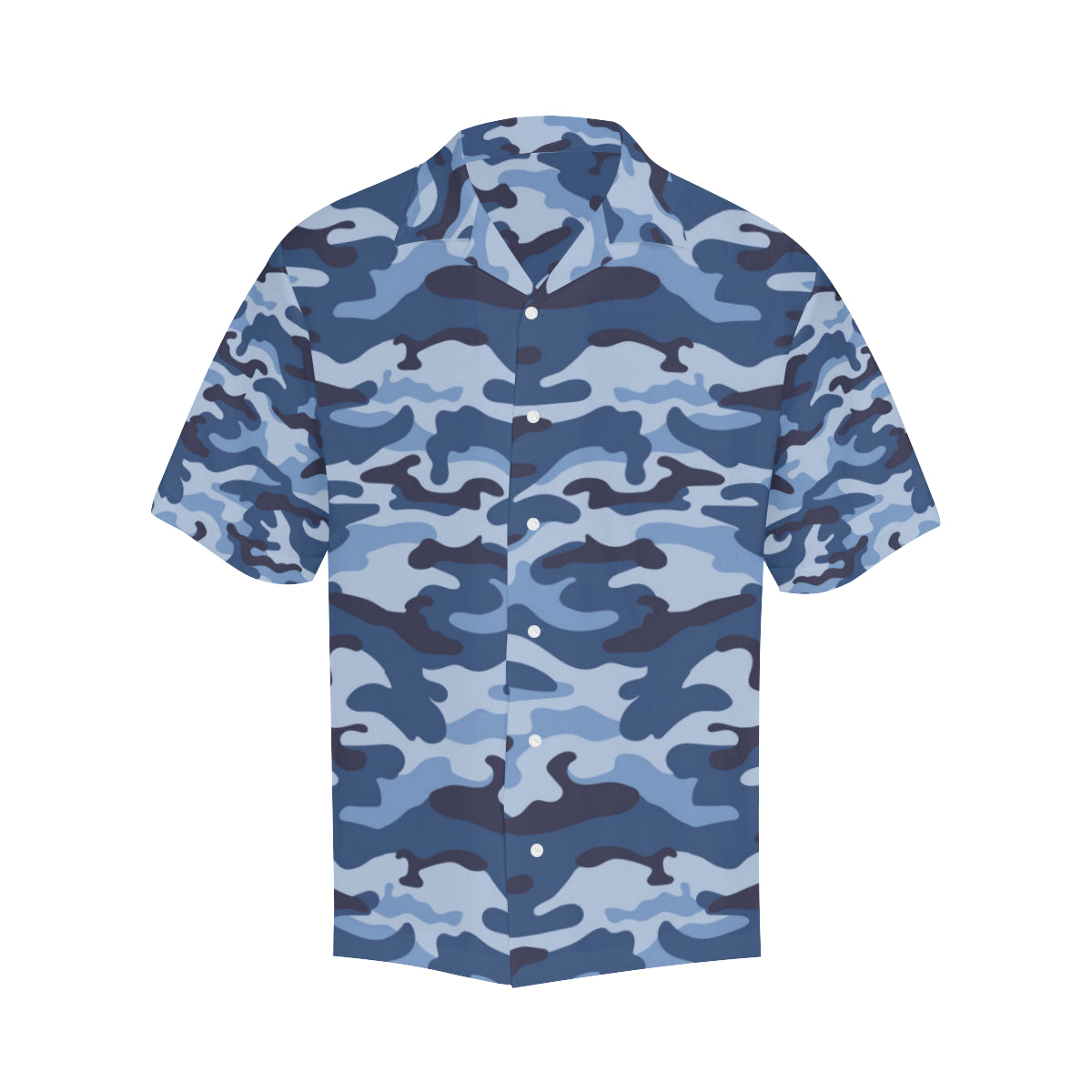 Blue camouflage pattern Men's All Over Print Hawaiian Shirt is a uniqued design and limited item. It made to order, hand printed, and sewn with love in our factory.