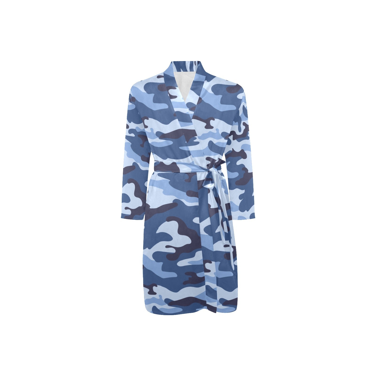 Blue camouflage pattern Men's Long Sleeve Belted Night Robe