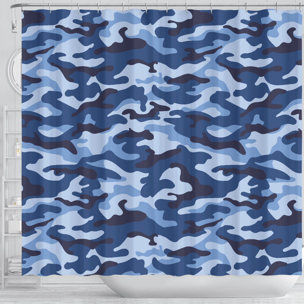 Blue Camo Camouflage Pattern Shower Curtain Fulfilled In US