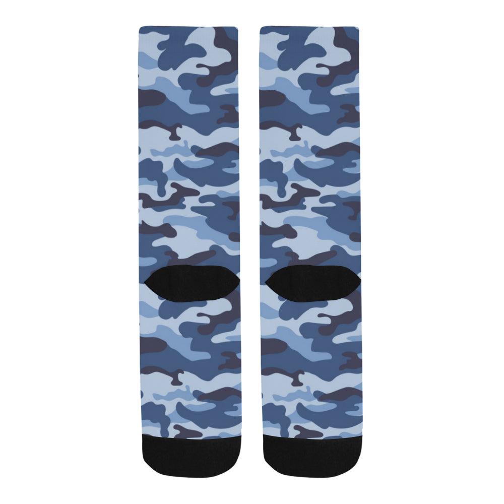 Blue camouflage pattern Crew Socks are uniqued design and limited item. It made to order, hand printed, and sewn with love in our factory.