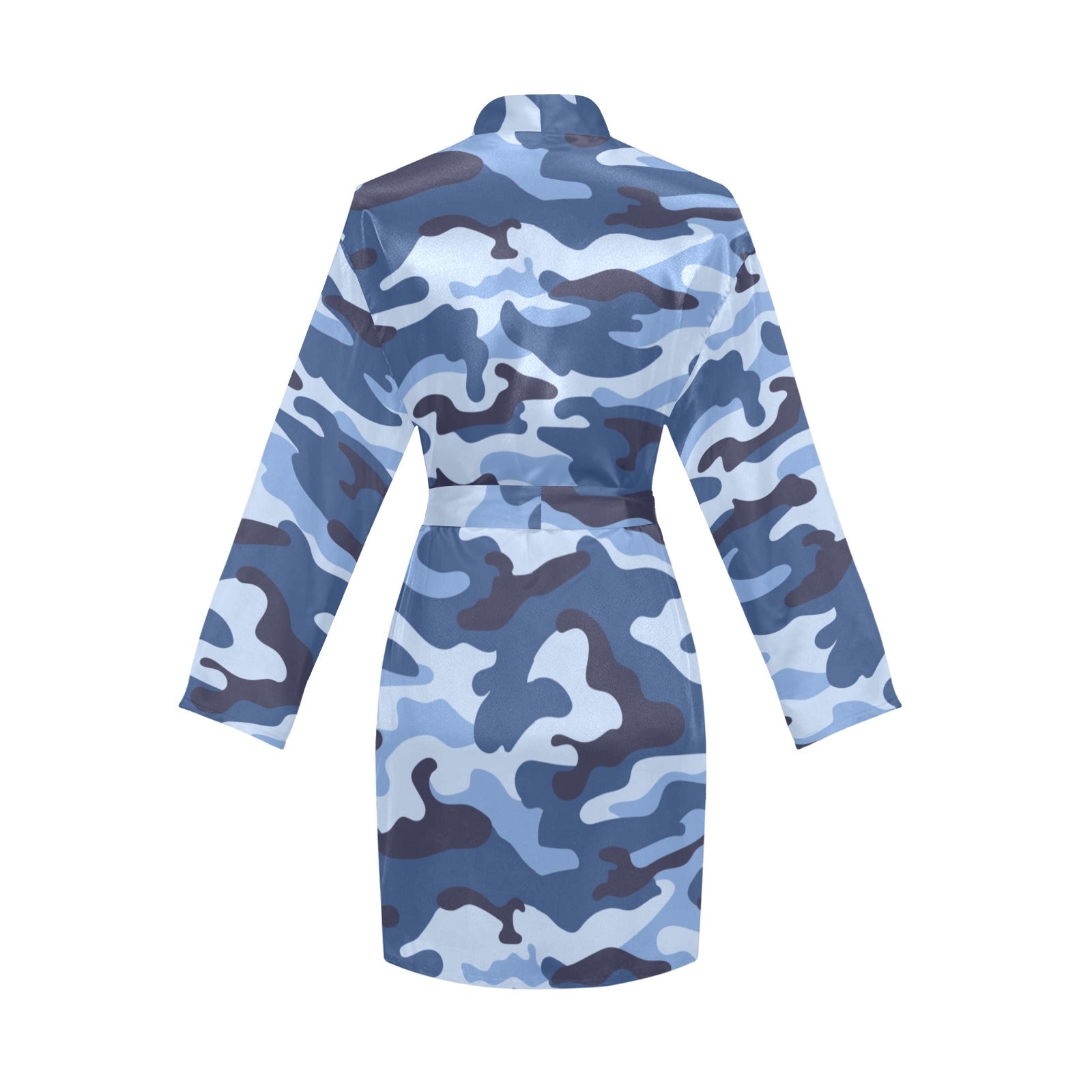 Blue camouflage pattern Women's Long Sleeve Belted Night Robe