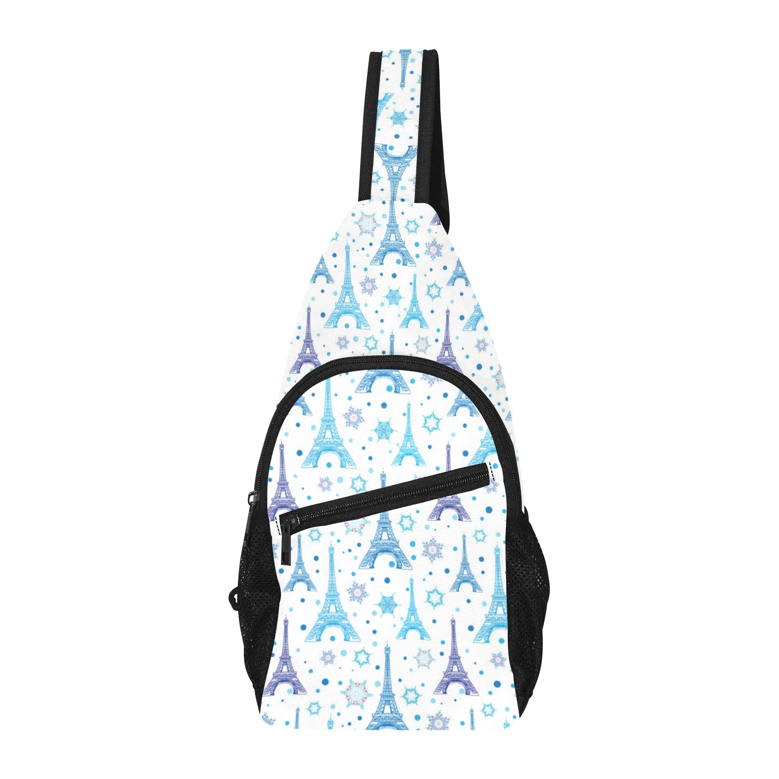 Blue Eiffel Tower Theme Pattern Print Design 01 All Over Print Chest Bag