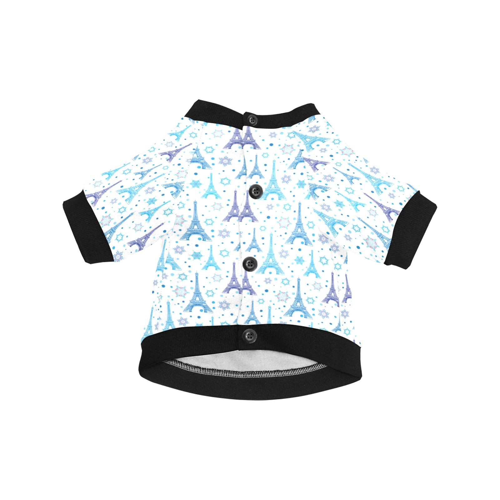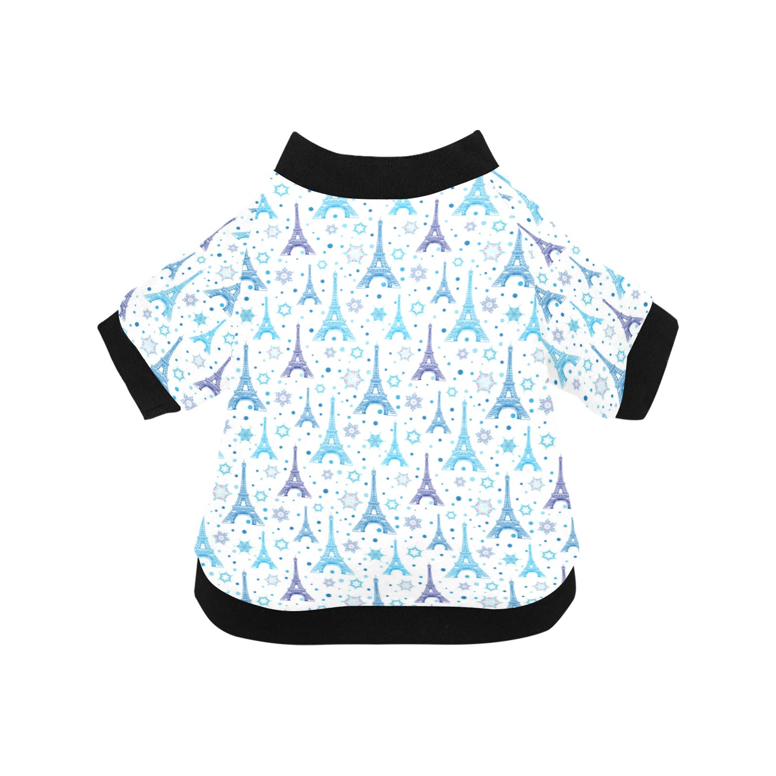 Blue Eiffel Tower Theme Pattern Print Design 01 All Over Print Pet Dog Round Neck Fuzzy Shirt