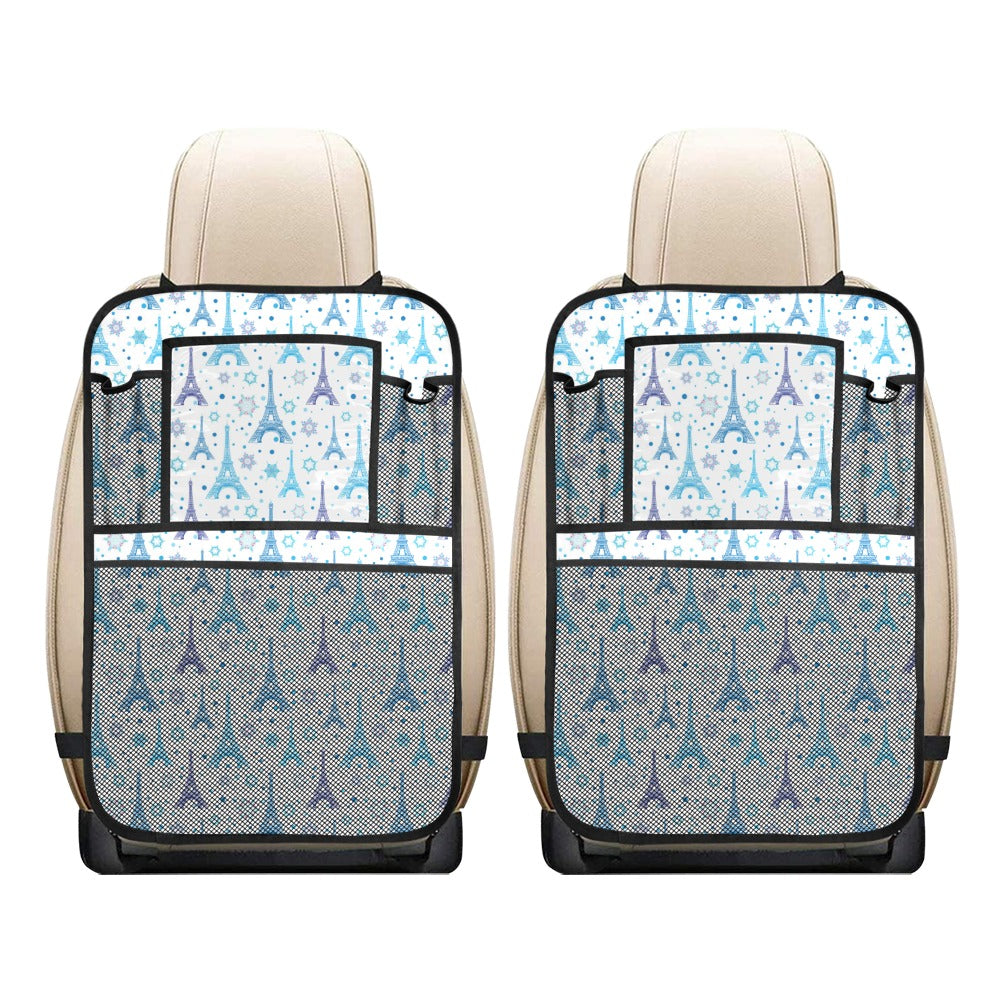 Blue Eiffel Tower Theme Pattern Print Design 01 Car Seat Back Organizer