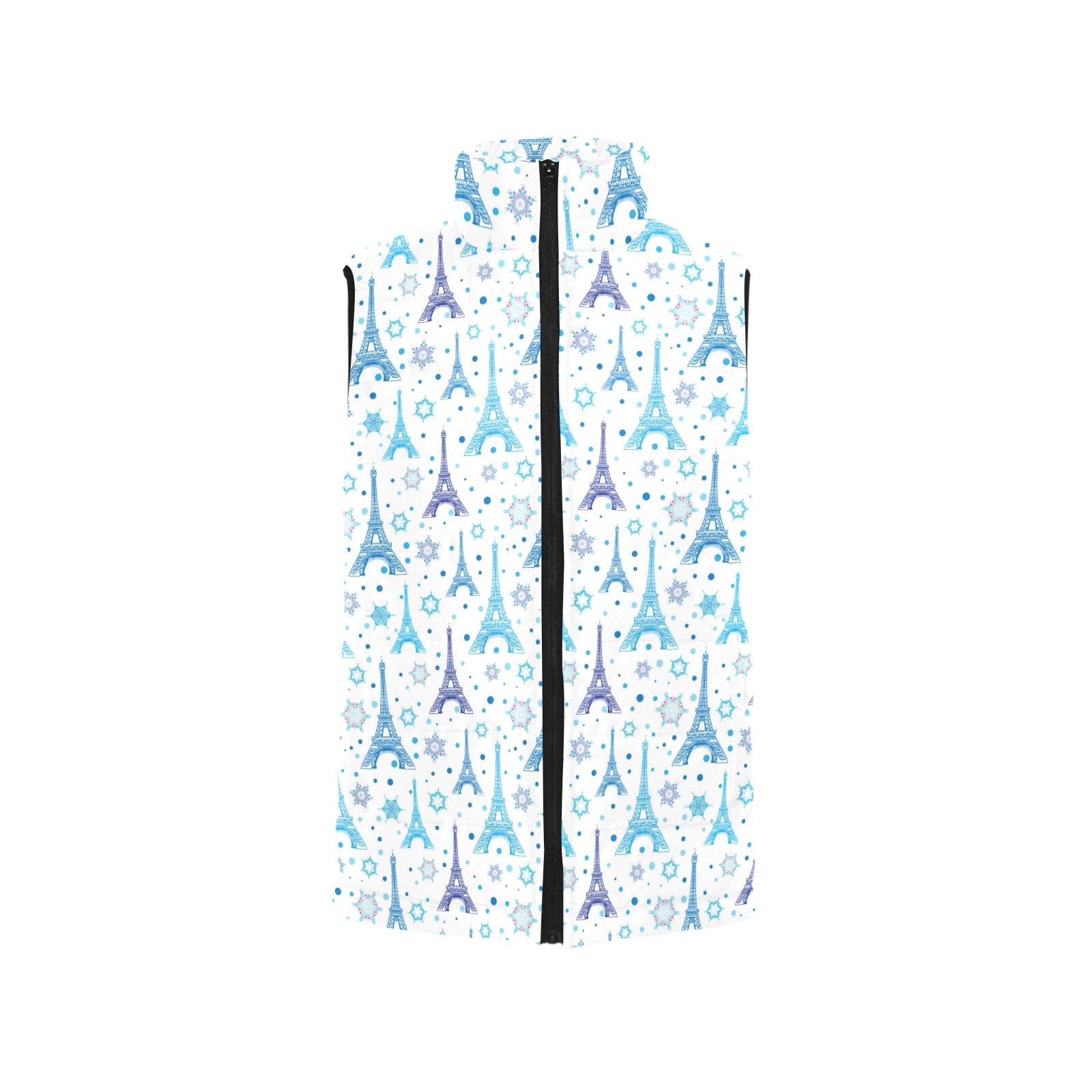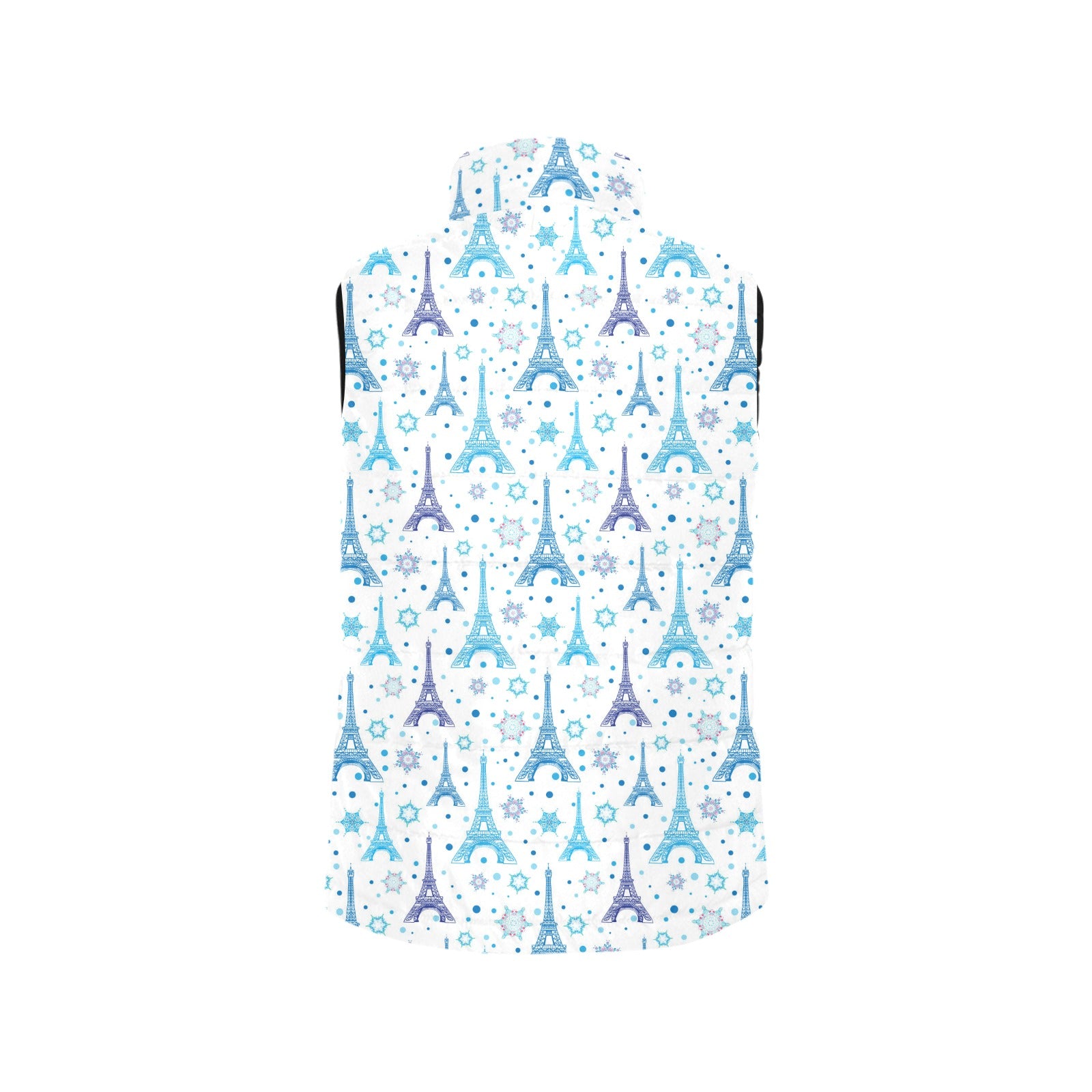 Blue Eiffel Tower Theme Pattern Print Design 01 Men's Padded Vest