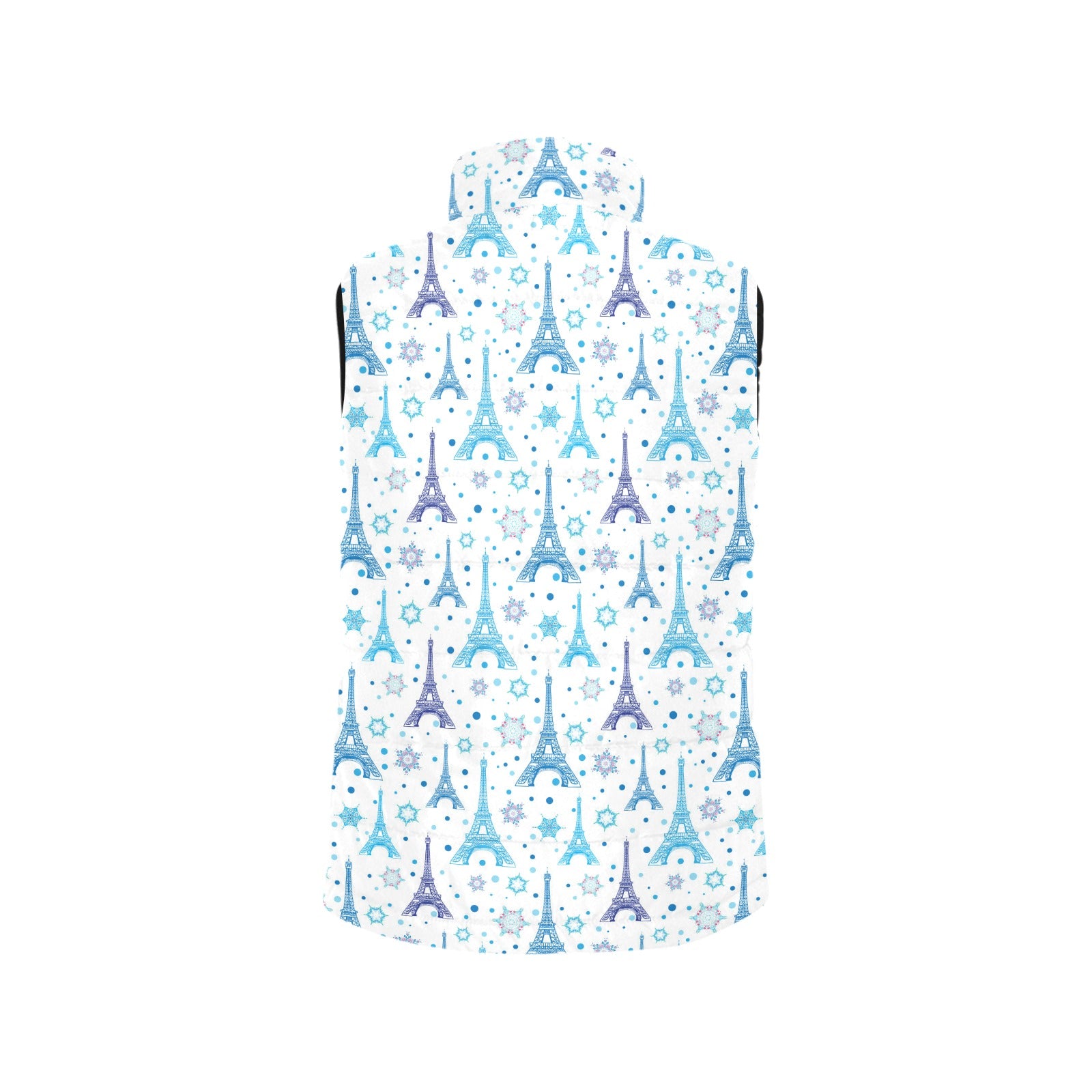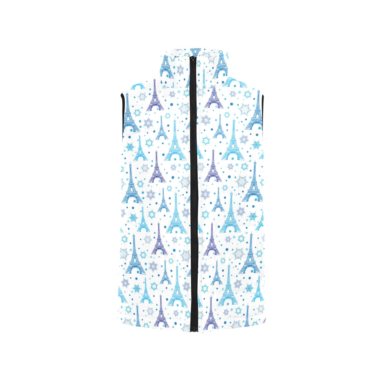 Blue Eiffel Tower Theme Pattern Print Design 01 Women's Padded Vest