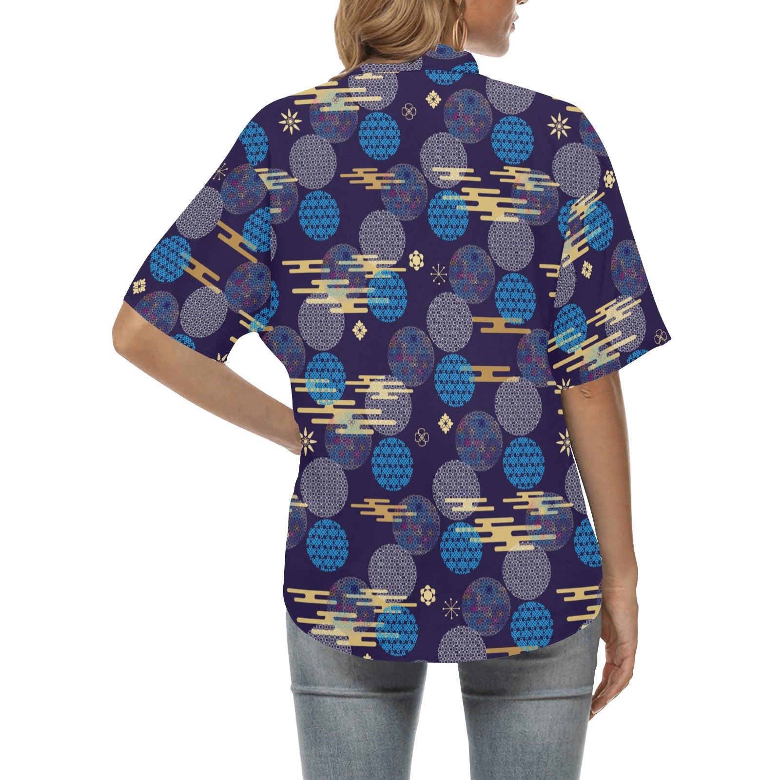 Blue japanese pattern cloud wave flower Women's All Over Print Hawaiian Shirt