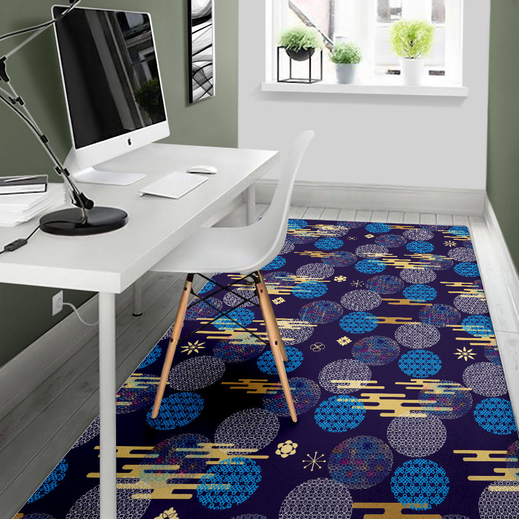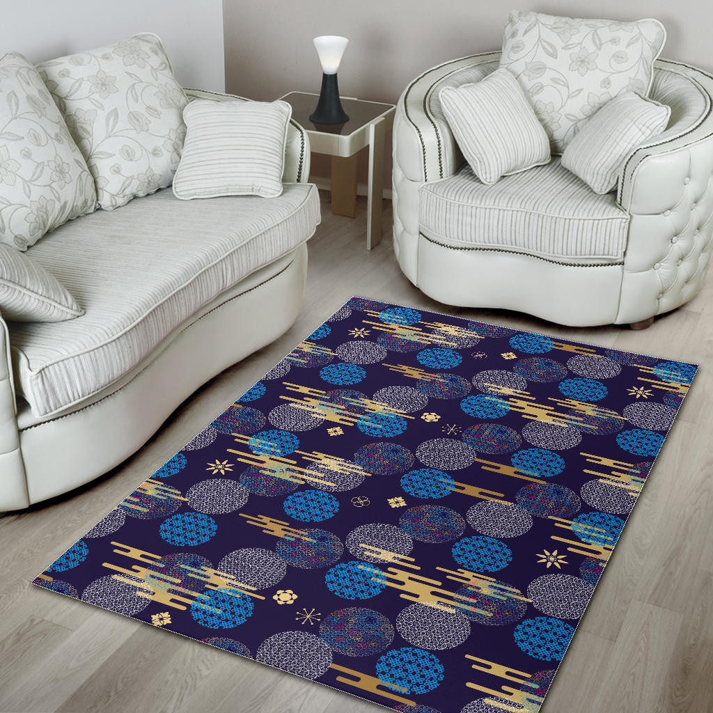 Blue japanese pattern cloud wave flower Area Rug is a uniqued design and limited item. It made to order, hand printed, and sewn with love in our factory.