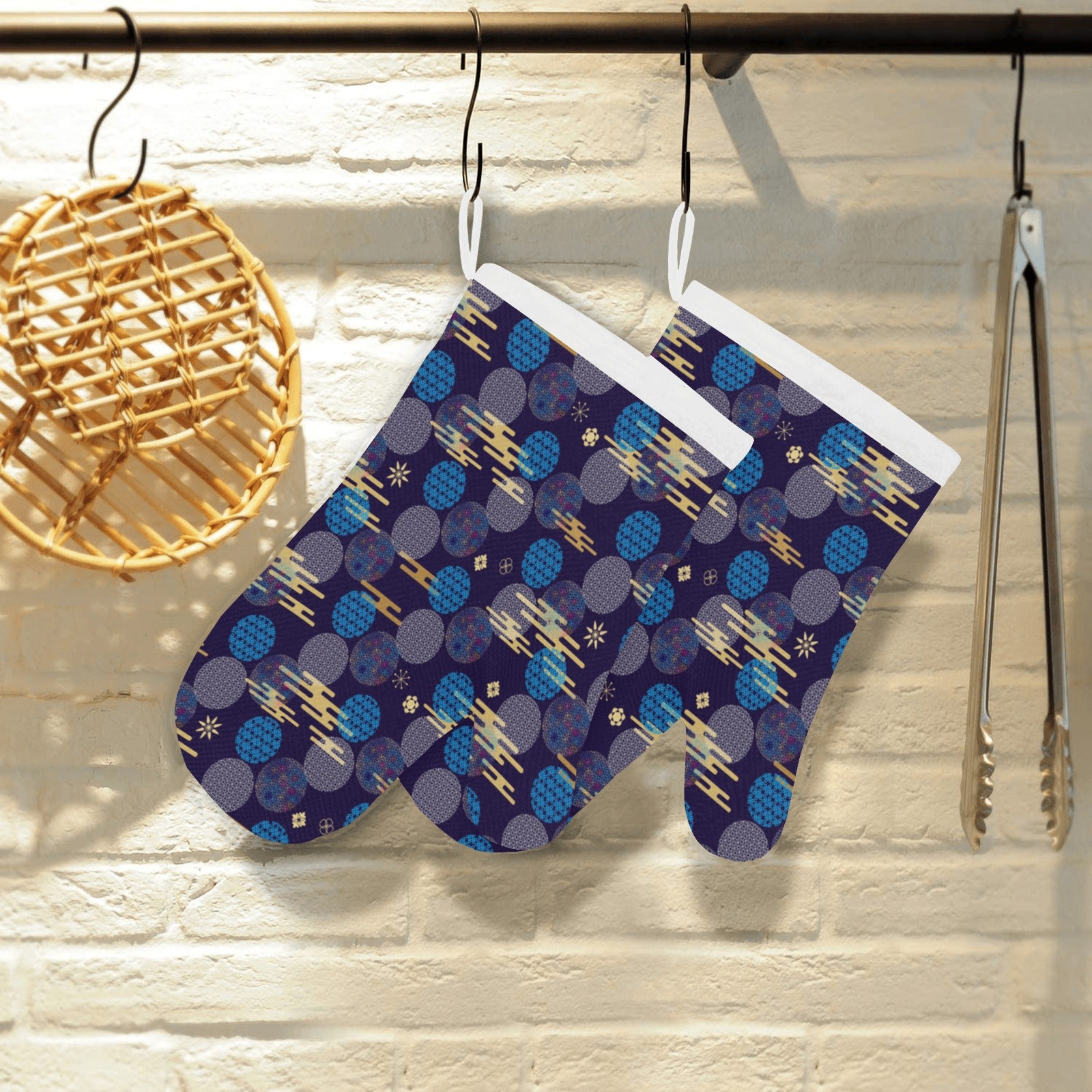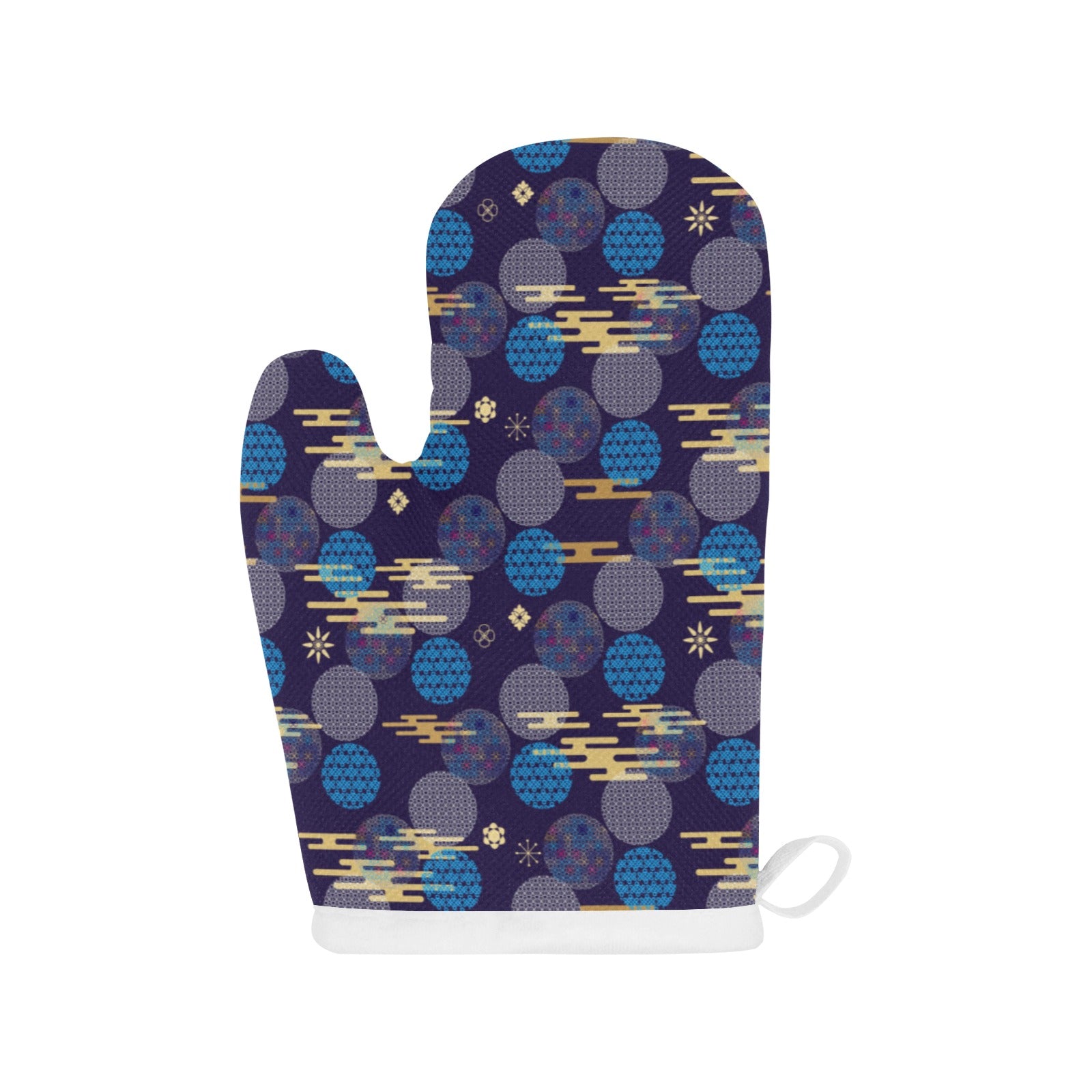 Blue japanese pattern cloud wave flower Heat Resistant Oven Mitts
