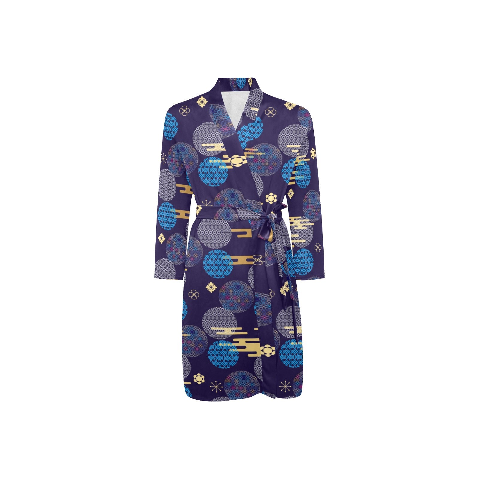 Blue japanese pattern cloud wave flower Men's Long Sleeve Belted Night Robe