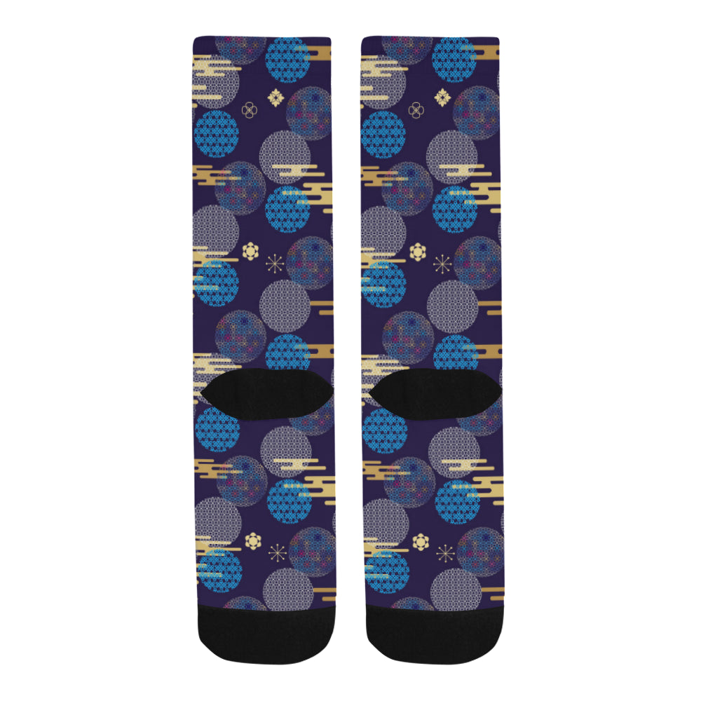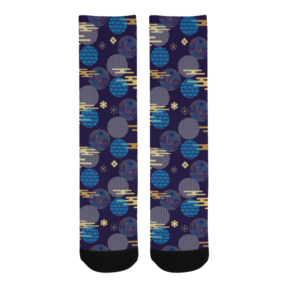 Blue japanese pattern cloud wave flower Crew Socks are uniqued design and limited item. It made to order, hand printed, and sewn with love in our factory.