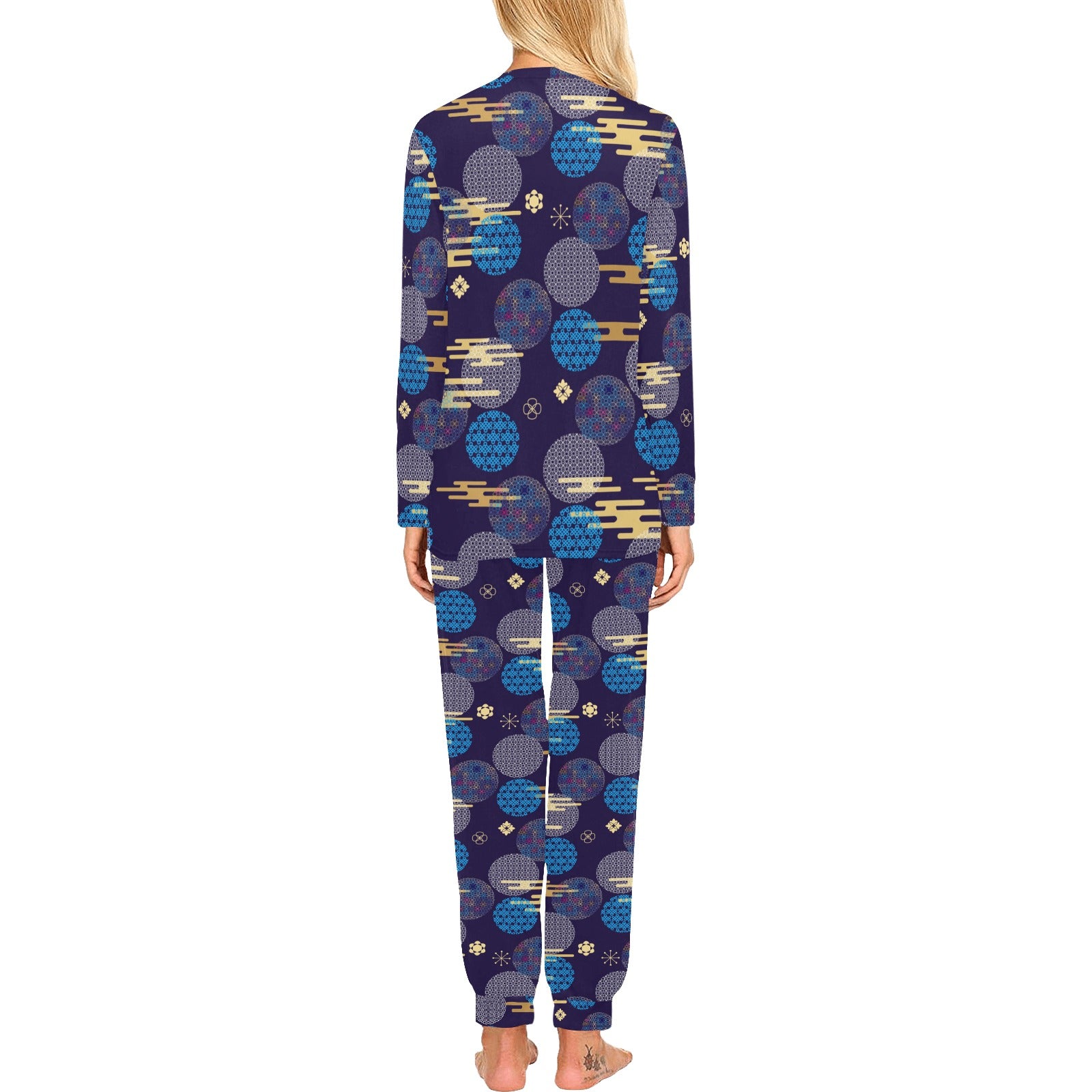 Blue japanese pattern cloud wave flower Women's All Over Print Pajama Set