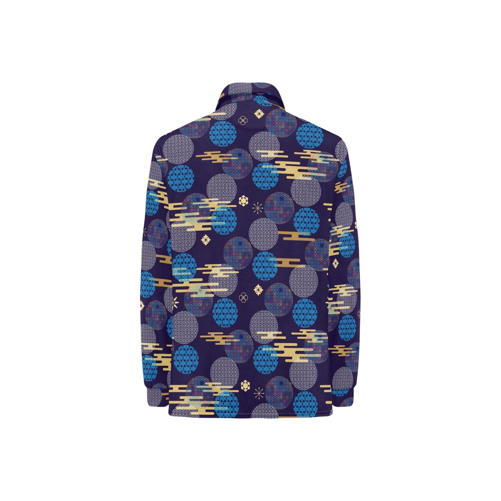 Blue japanese pattern cloud wave flower Women's Long Sleeve Polo Shirt