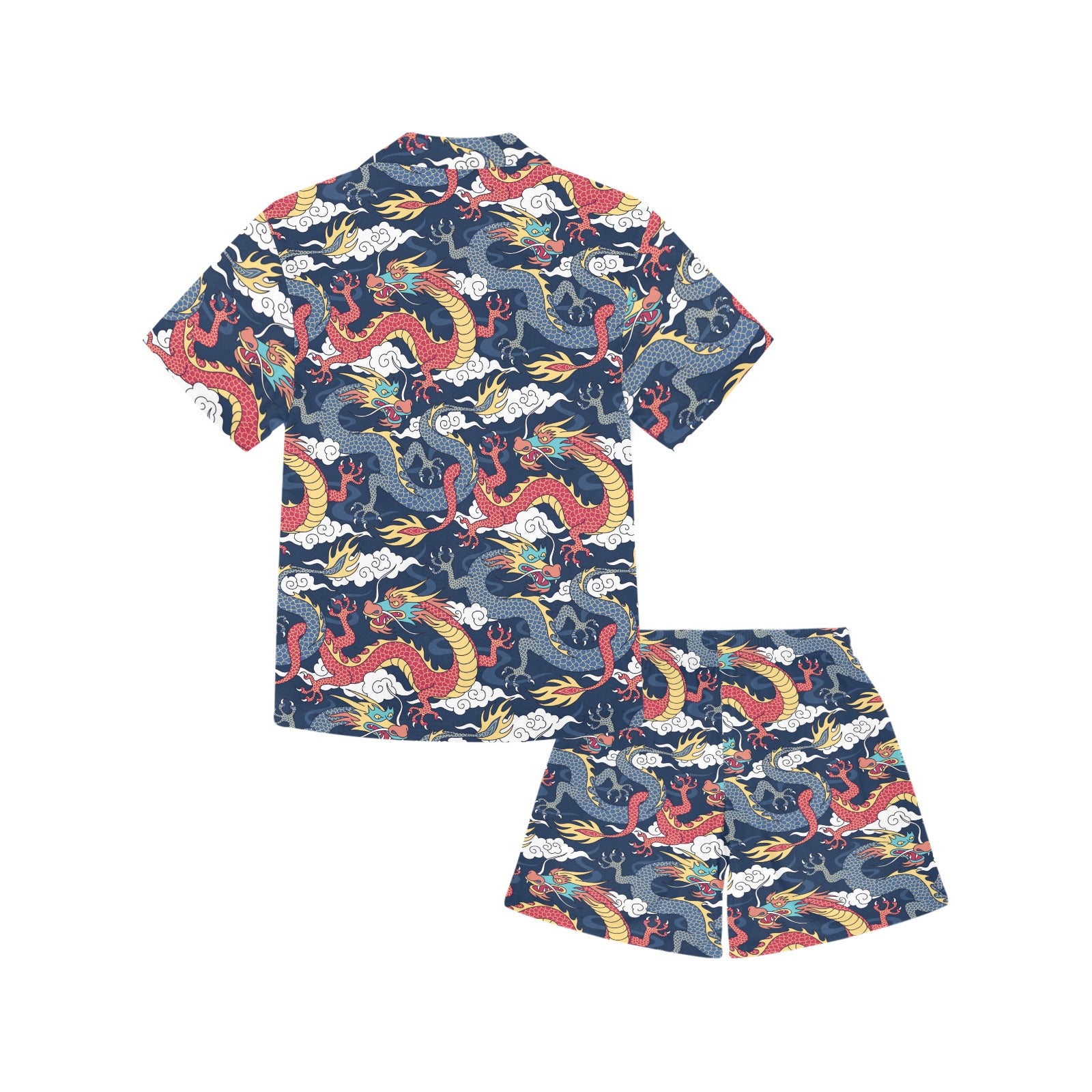 Blue red dragon cloud pattern Kids' Boys' Girls' V-Neck Short Pajama Set