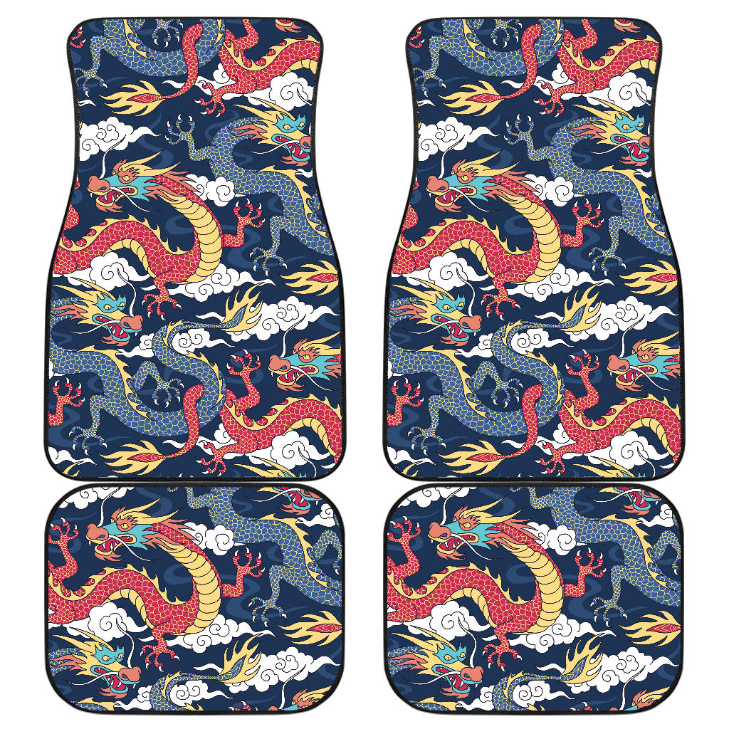 Blue Red Dragon Cloud Pattern Front And Back Car Mats