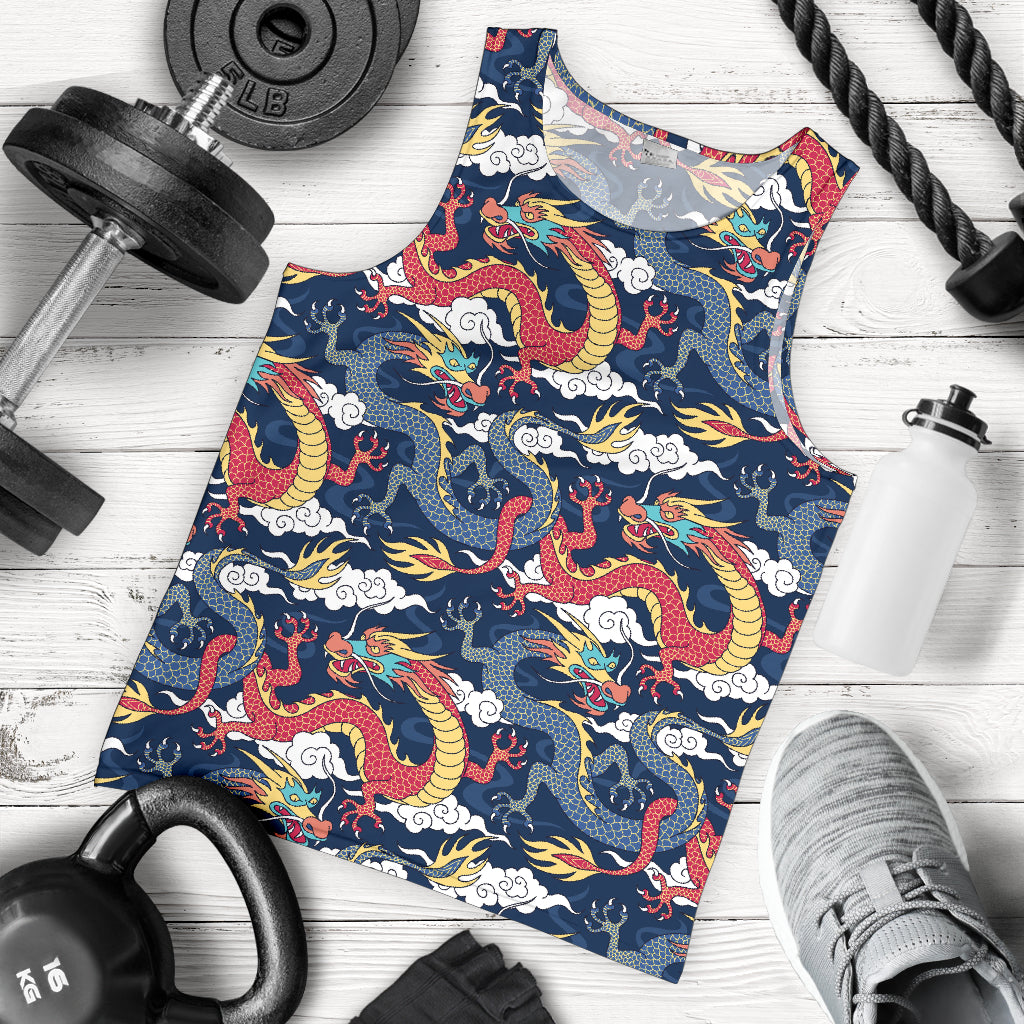 Blue red dragon cloud pattern Men Tank Top