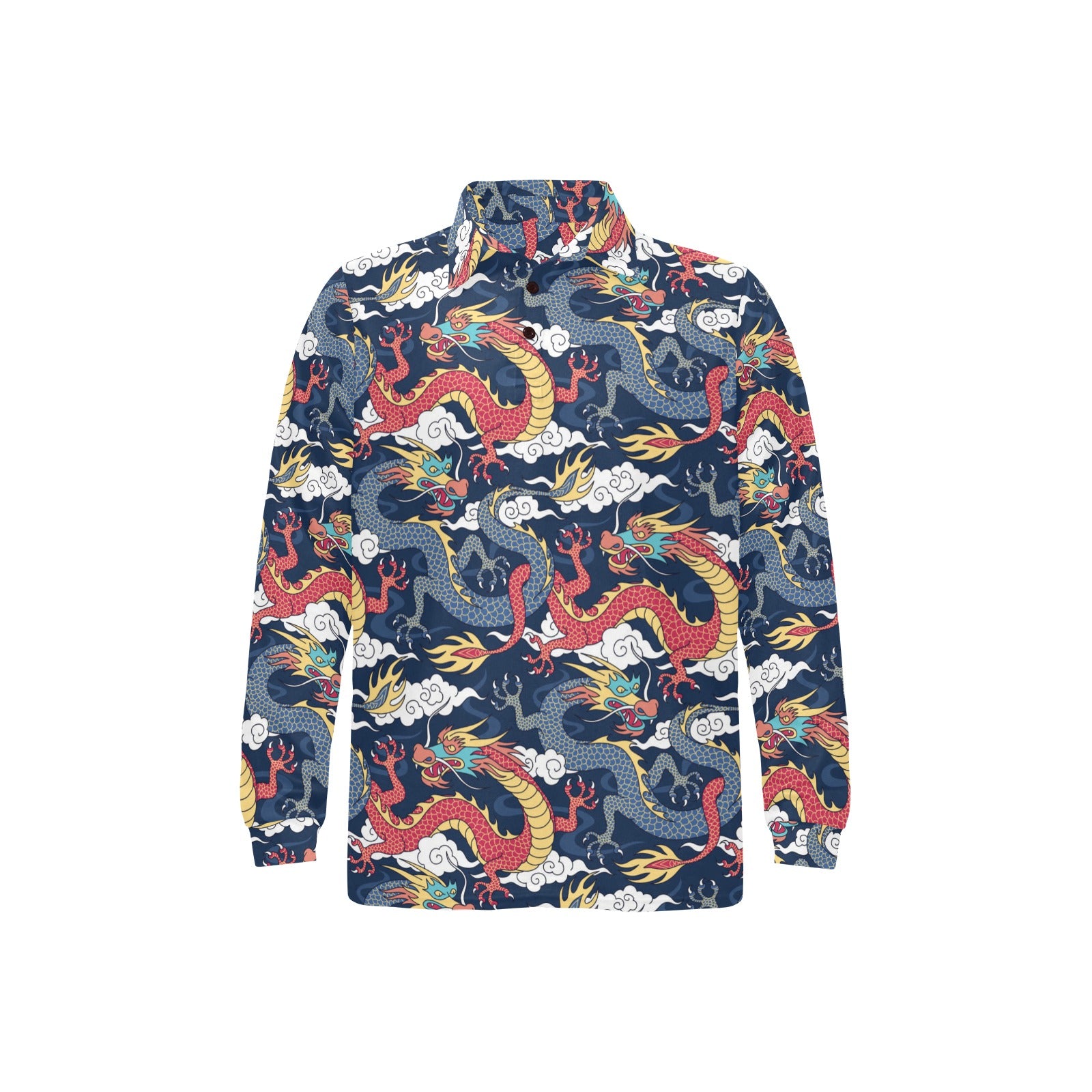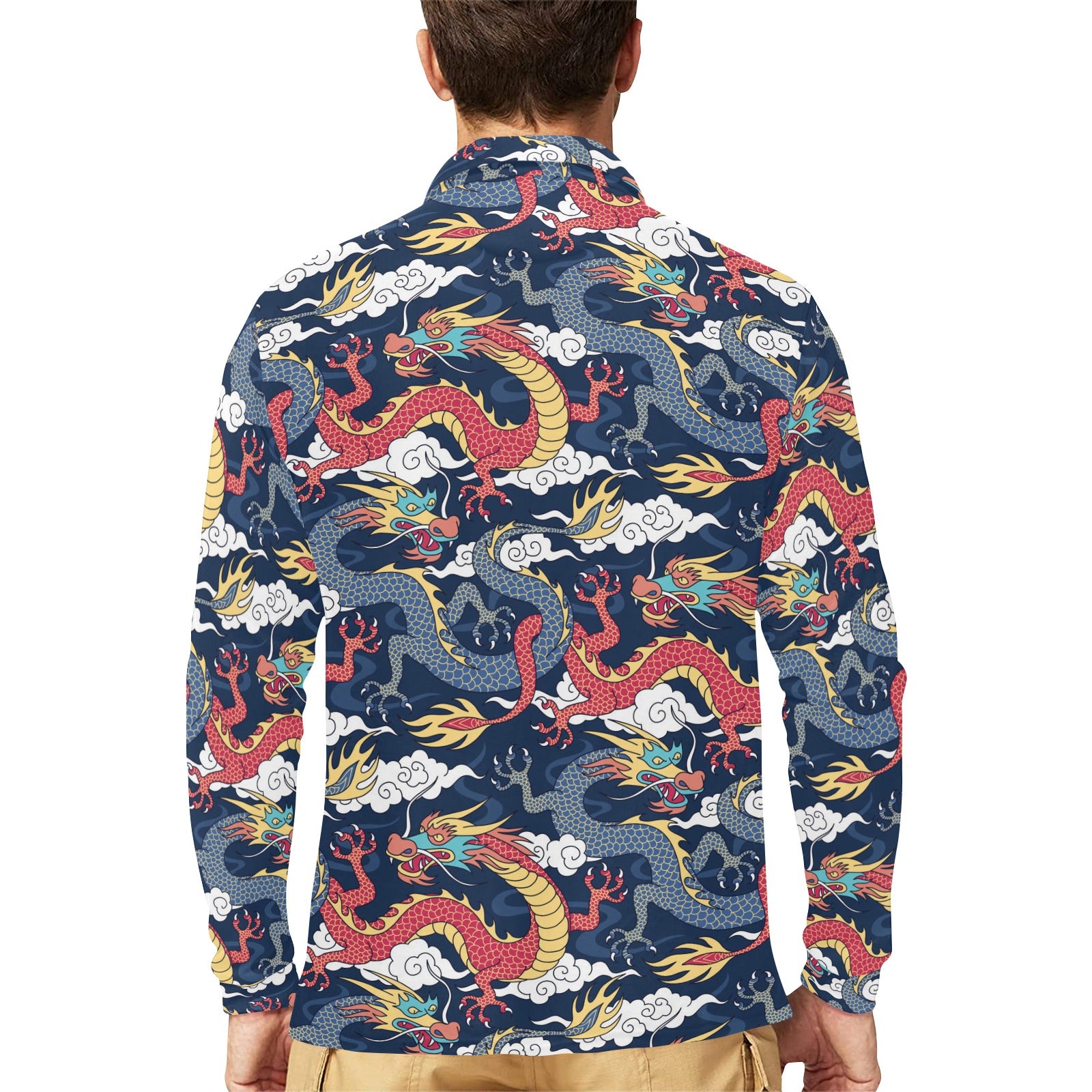 Blue red dragon cloud pattern Men's Long Sleeve Polo Shirt