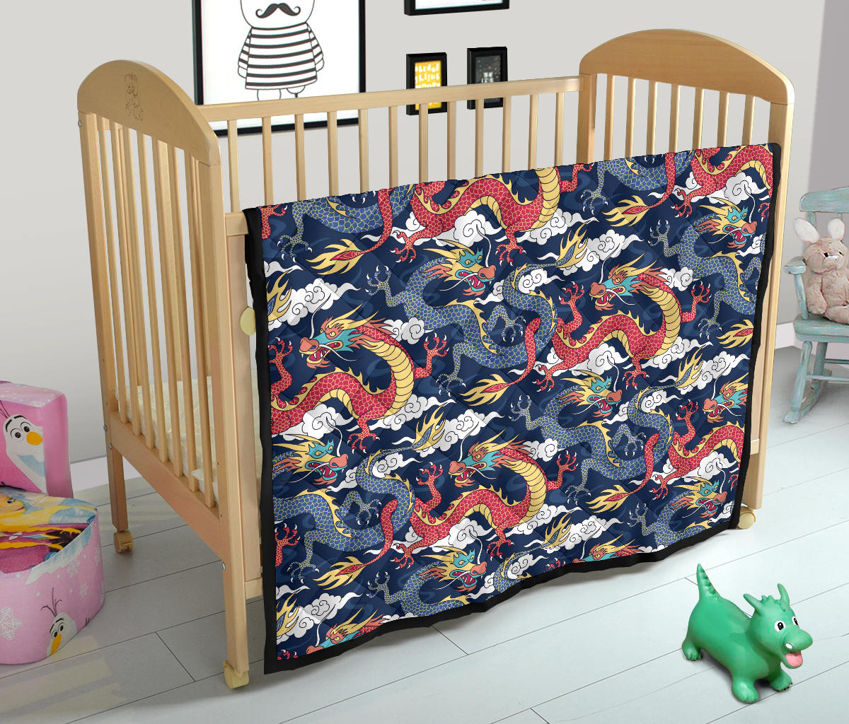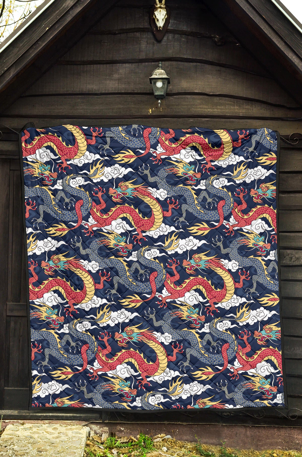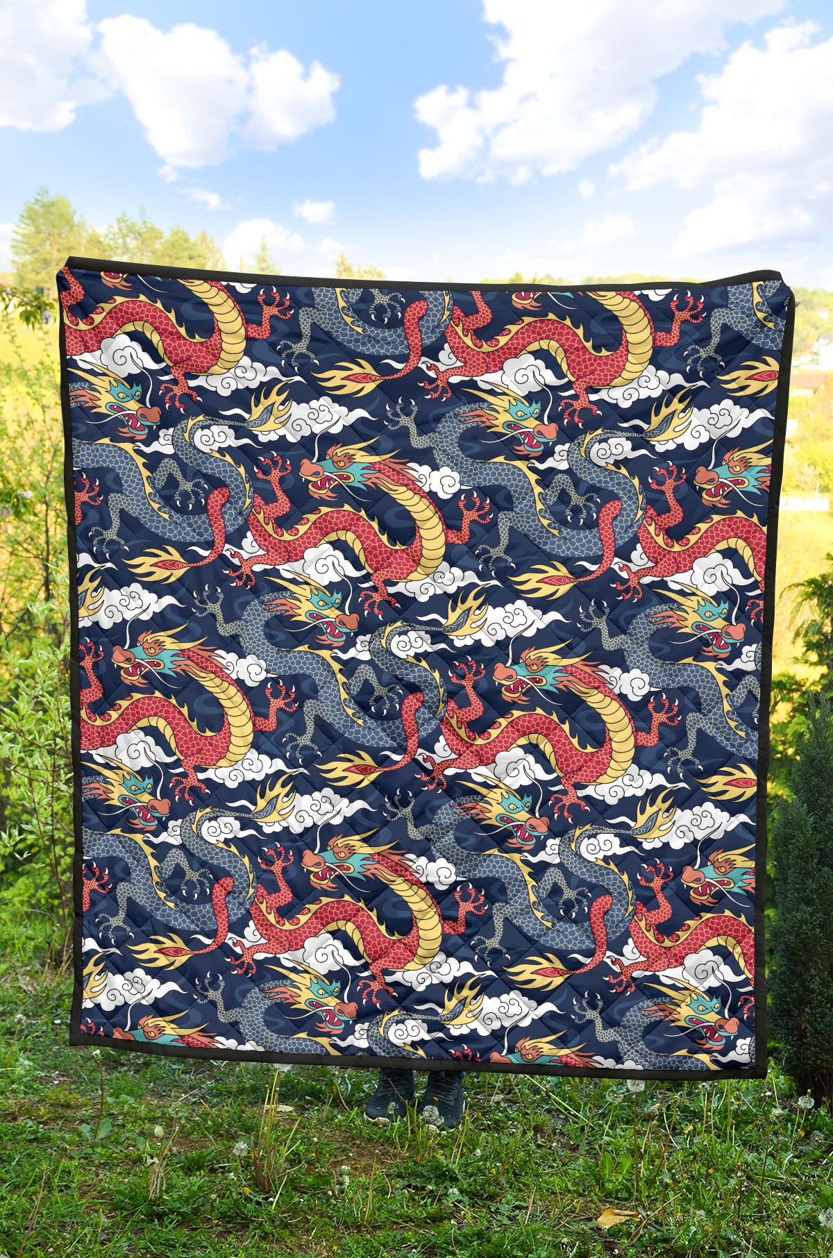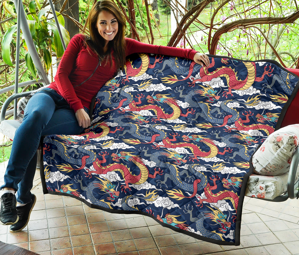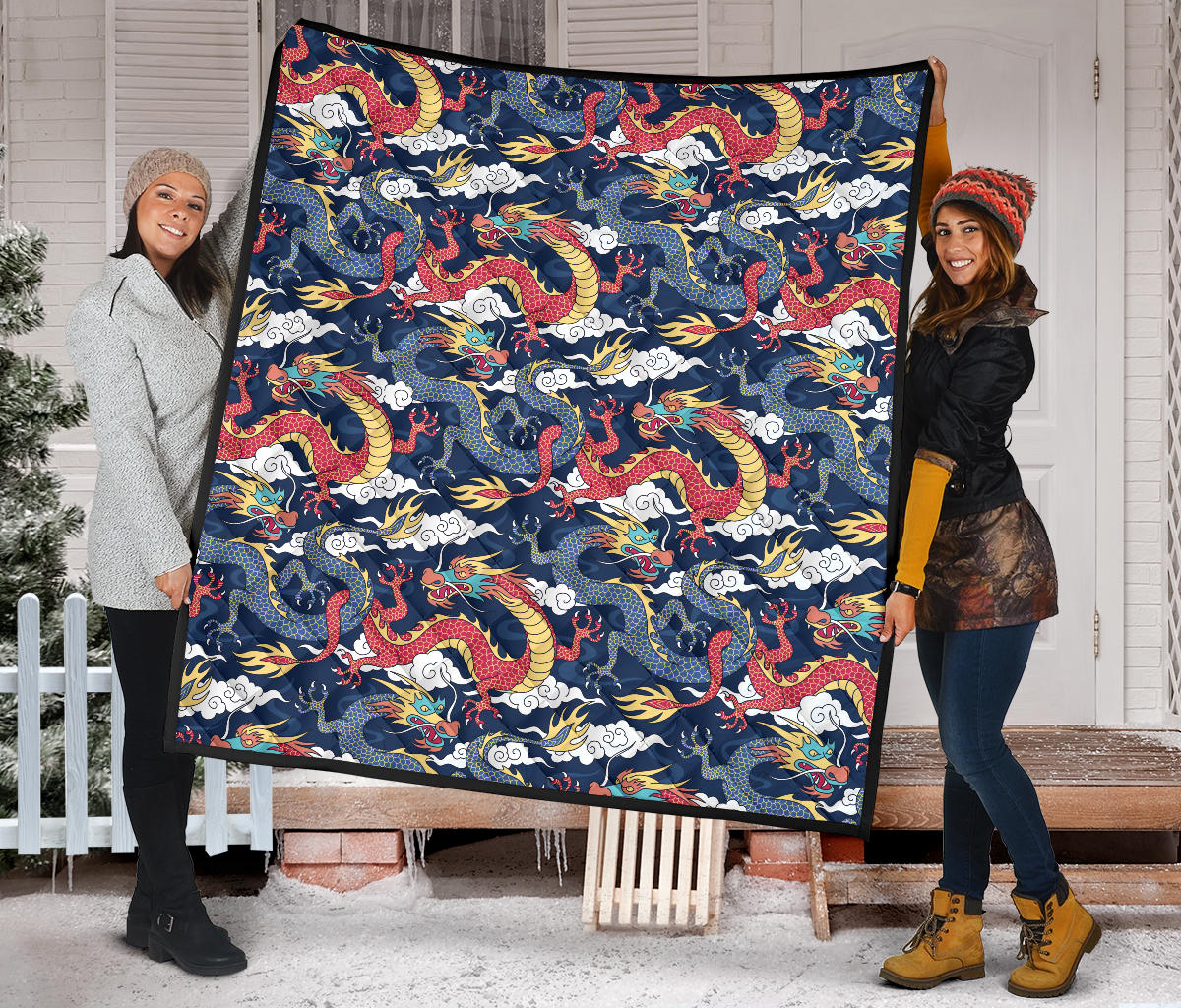Blue Red Dragon Cloud Pattern Premium Quilt is a uniqued design and limited item. It made to order, hand printed, and sewn with love in our factory.