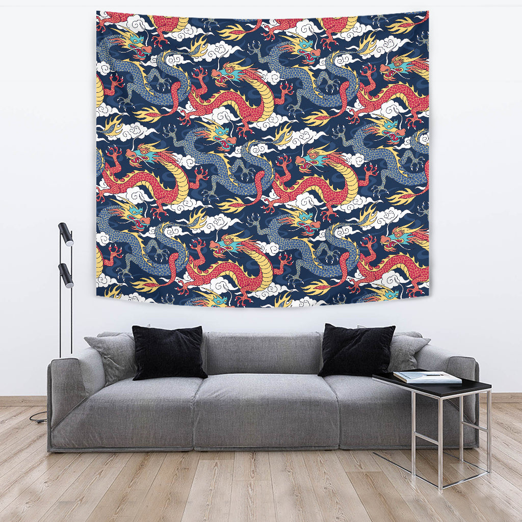 Blue red dragon cloud pattern Tapestry is a uniqued design and limited item. It made to order, hand printed, and sewn with love in our factory.