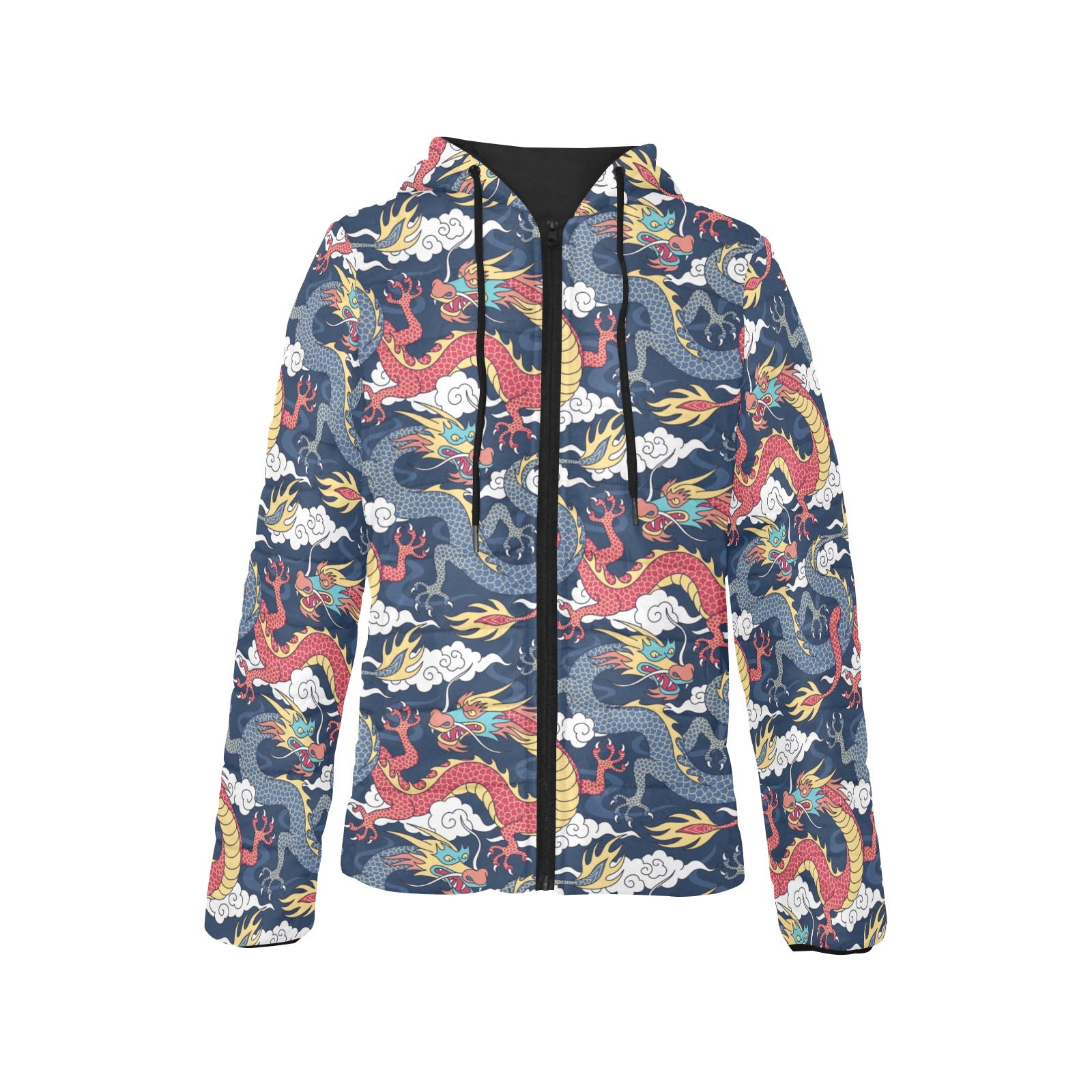 Blue red dragon cloud pattern Women's Padded Hooded Jacket