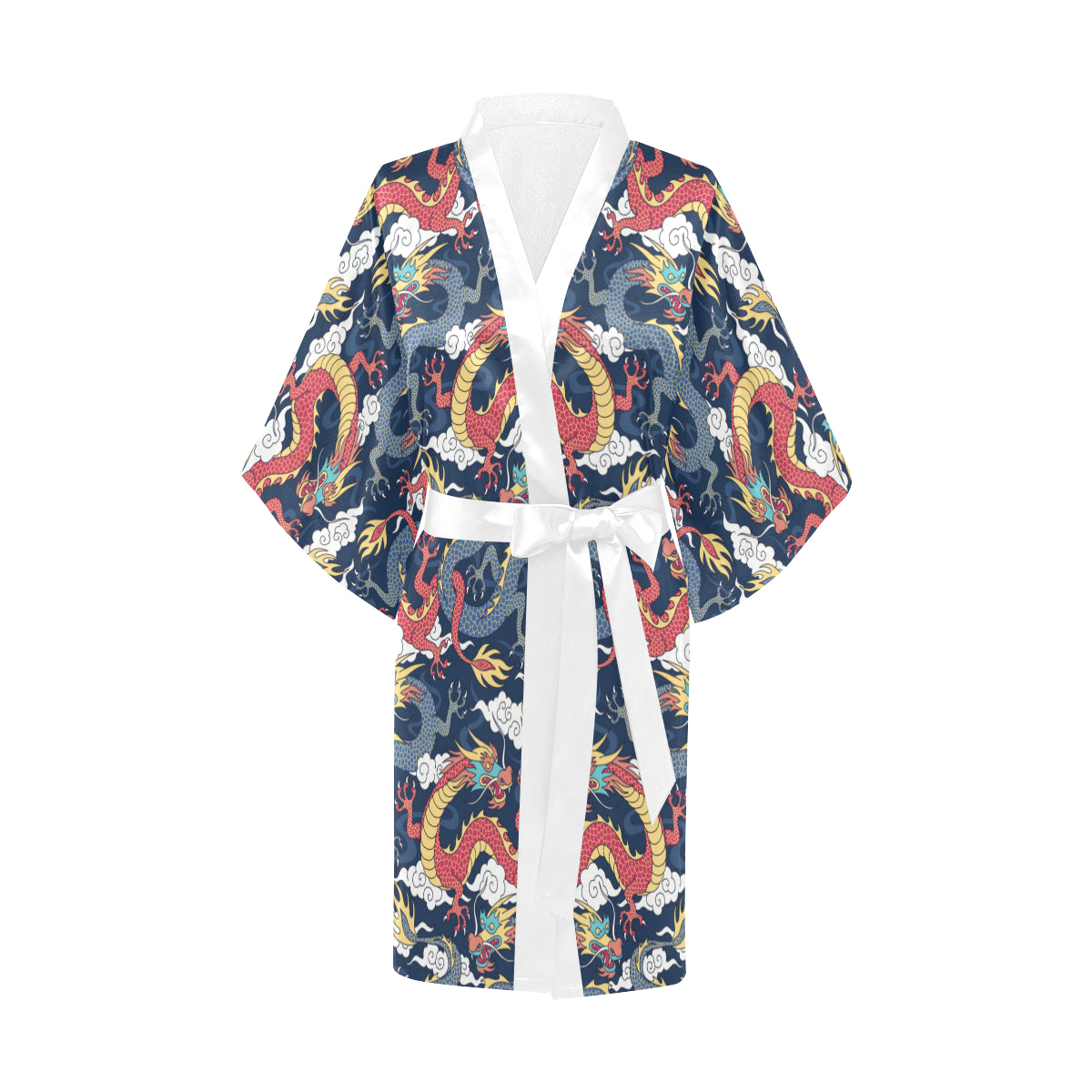Blue red dragon cloud pattern Women's Short Kimono Robe is a uniqued design and limited item. It made to order, hand printed, and sewn with love in our factory.